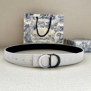 CD Belt 35mm Milkshake White Canvas Gray Calfskin Silver Buckle