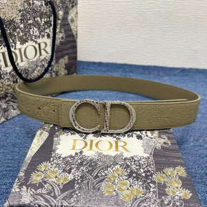 CD Belt 35mm Kumo Cannage Pattern Olive Green Leather Silver Buckle