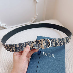 CD Belt 35mm Black Canvas Calfskin Silver Logo Buckle
