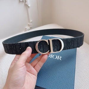 CD Belt 35mm Black Blue Leather Silver Logo Buckle