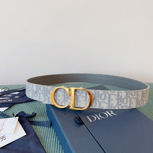 CD Belt 35mm Milkshake White Canvas Gray Calfskin Gold Buckle