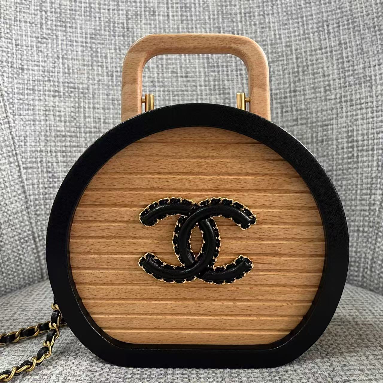 Chanel Beech Wood Round Vanity Beige Black Wood Calfskin