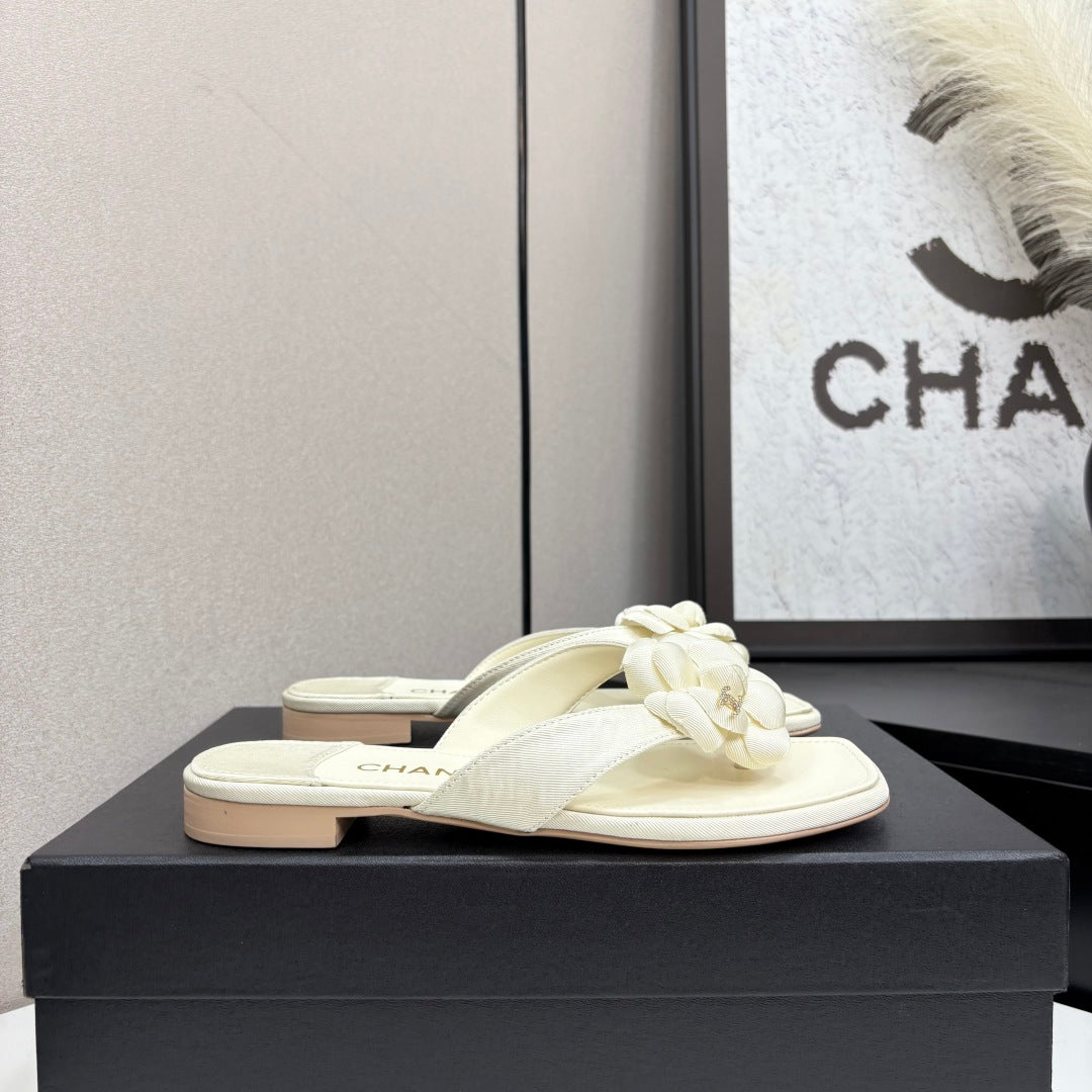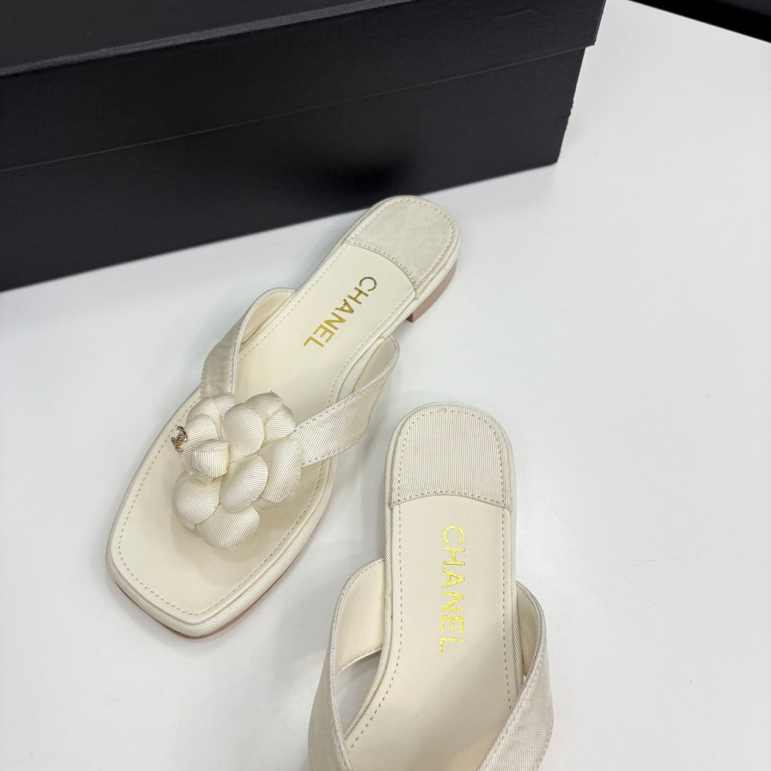 CC 25 Camellia Thong Sandals Ivory Sheepskin And Fabric 368836