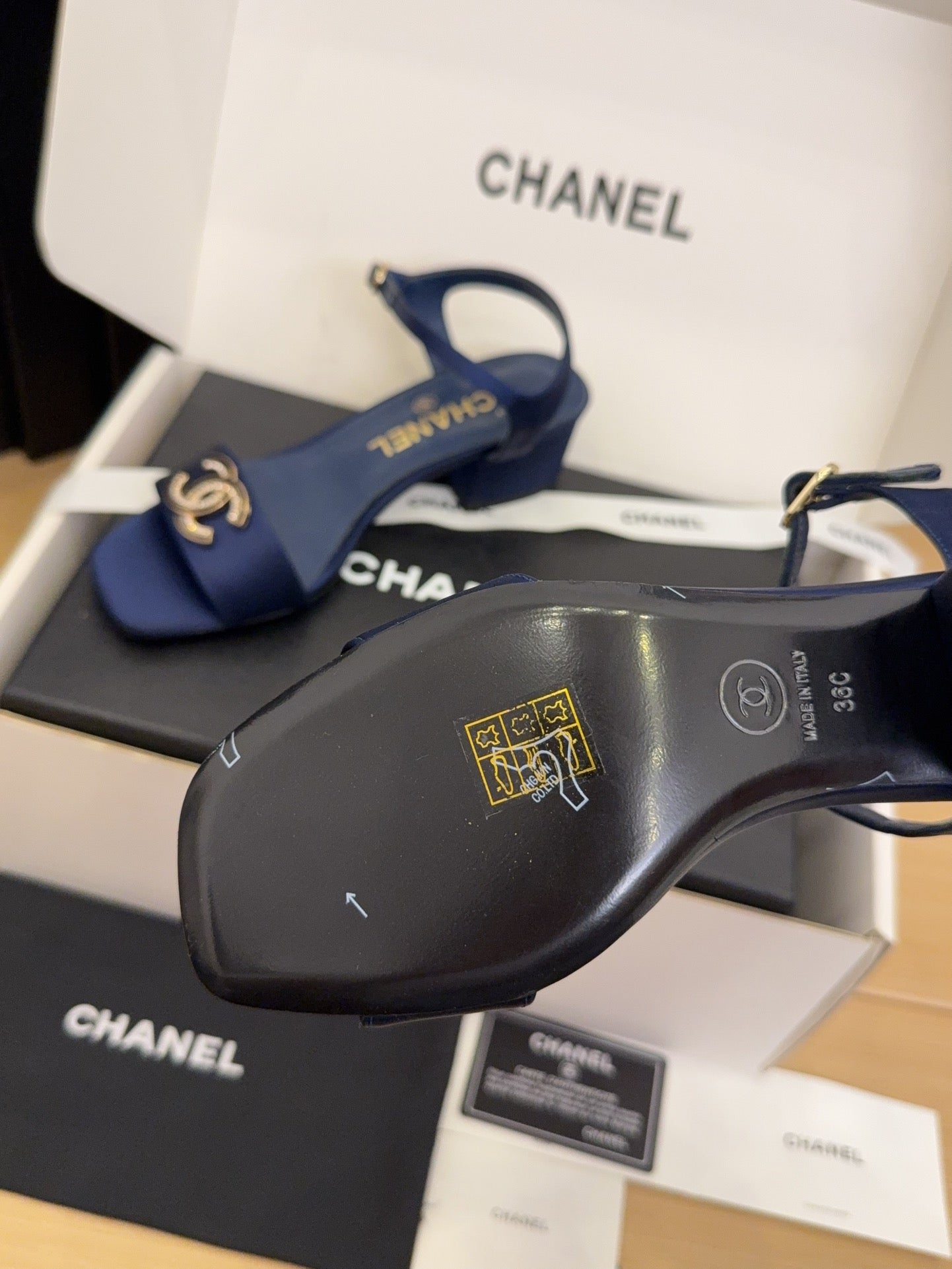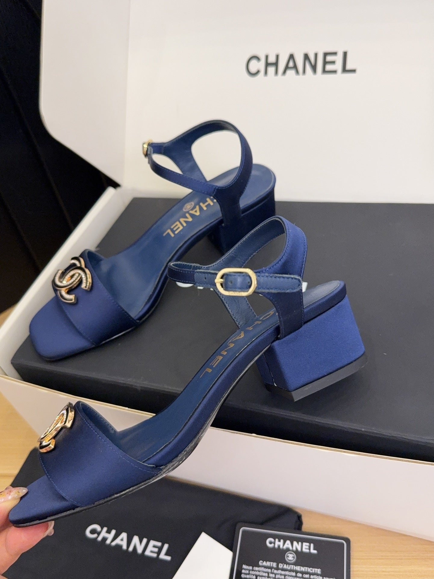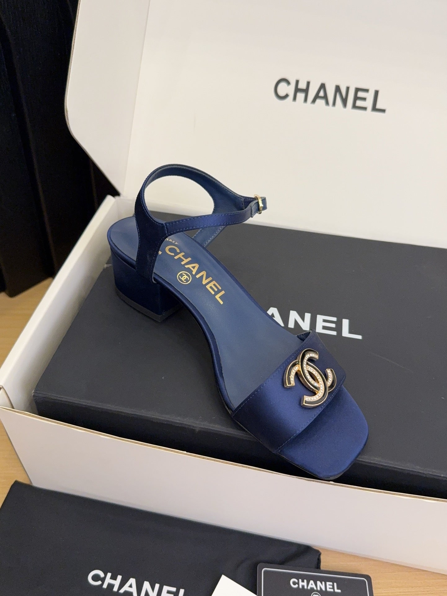 CC 25 High Heels 40 Sandals Navy Blue Satin And Sheepskin Square Toe 277711