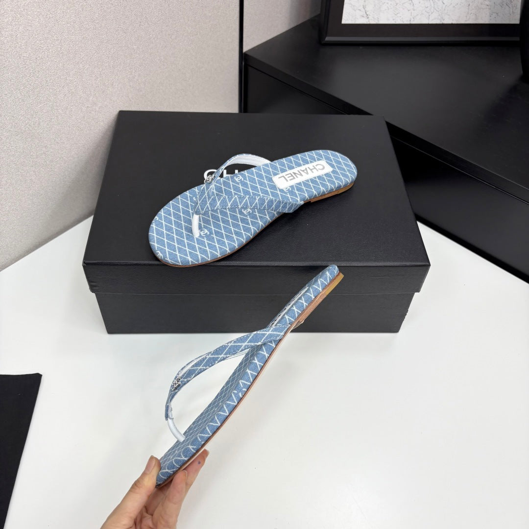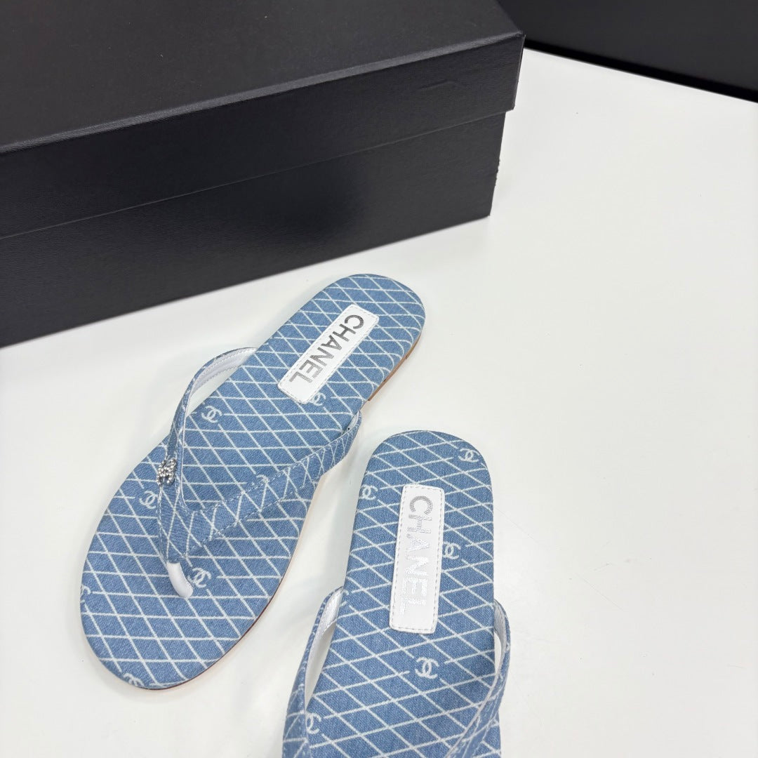 CC Crystal Logo Thong Sandal Light Blue Fabric And Sheepskin352484