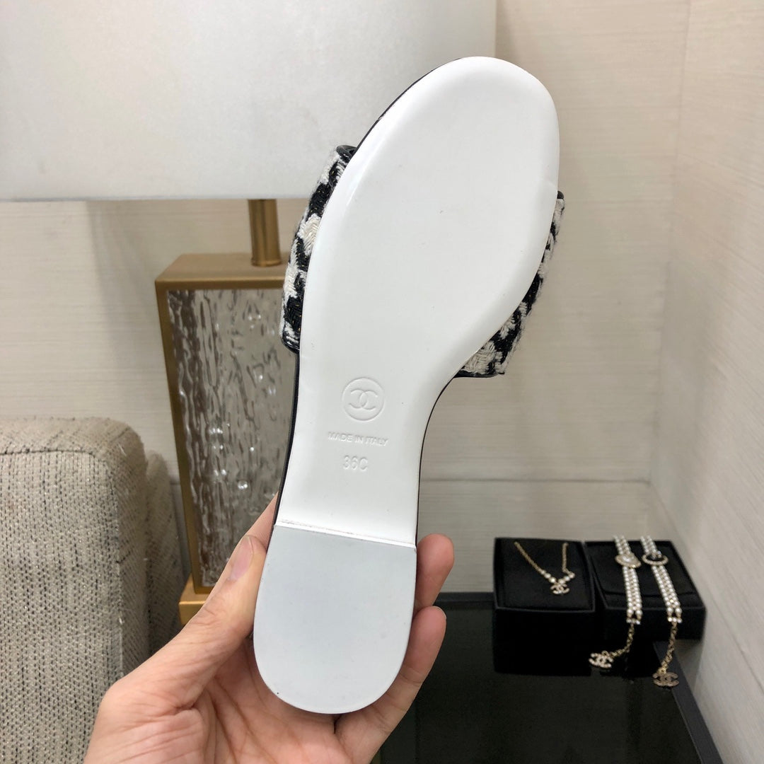 mule sandal black white houndstooth fabric