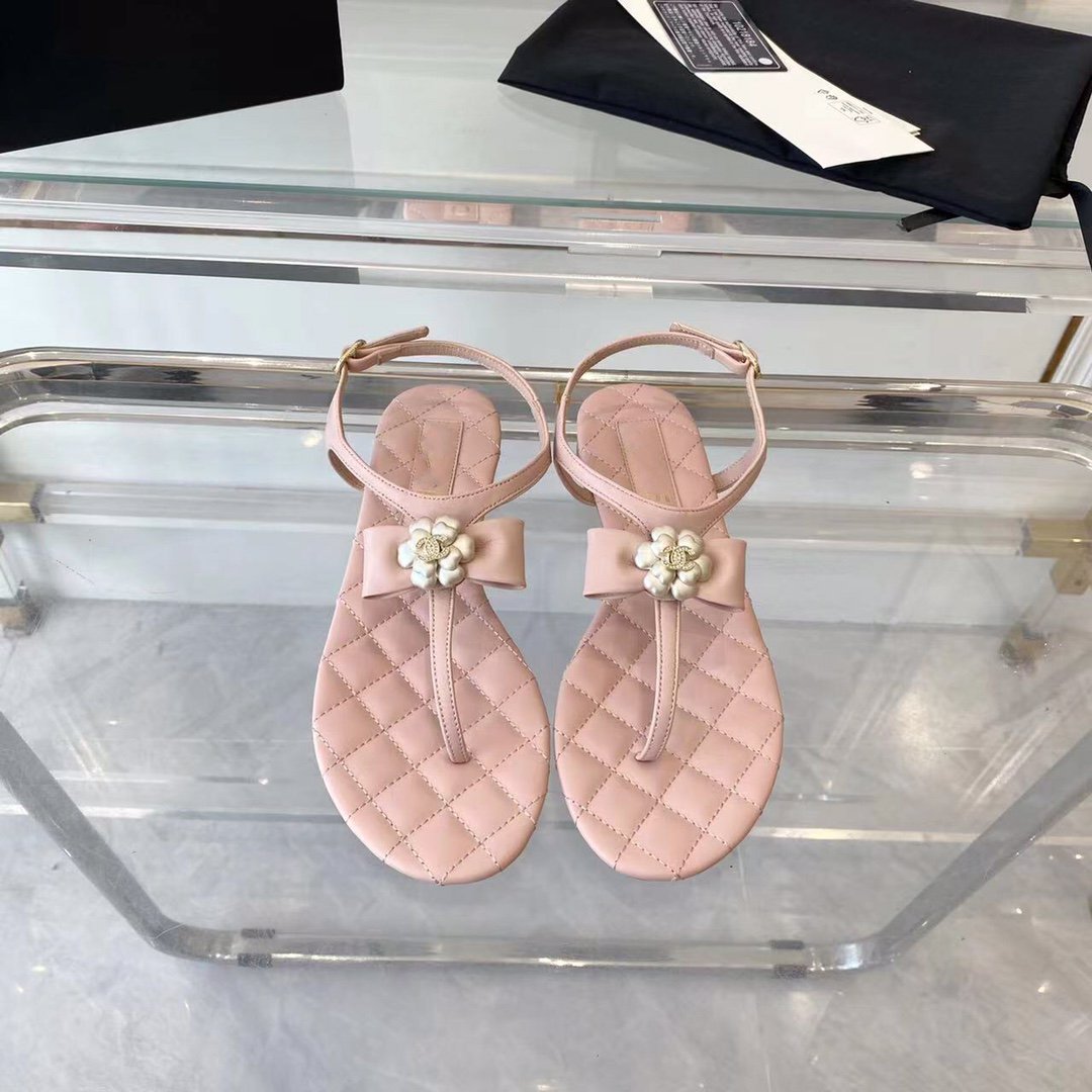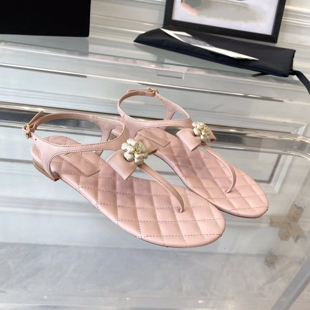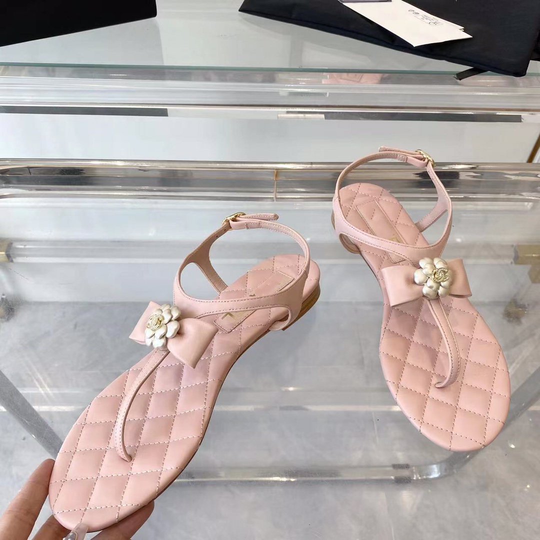 sandal pink quilted lambskin flower cc