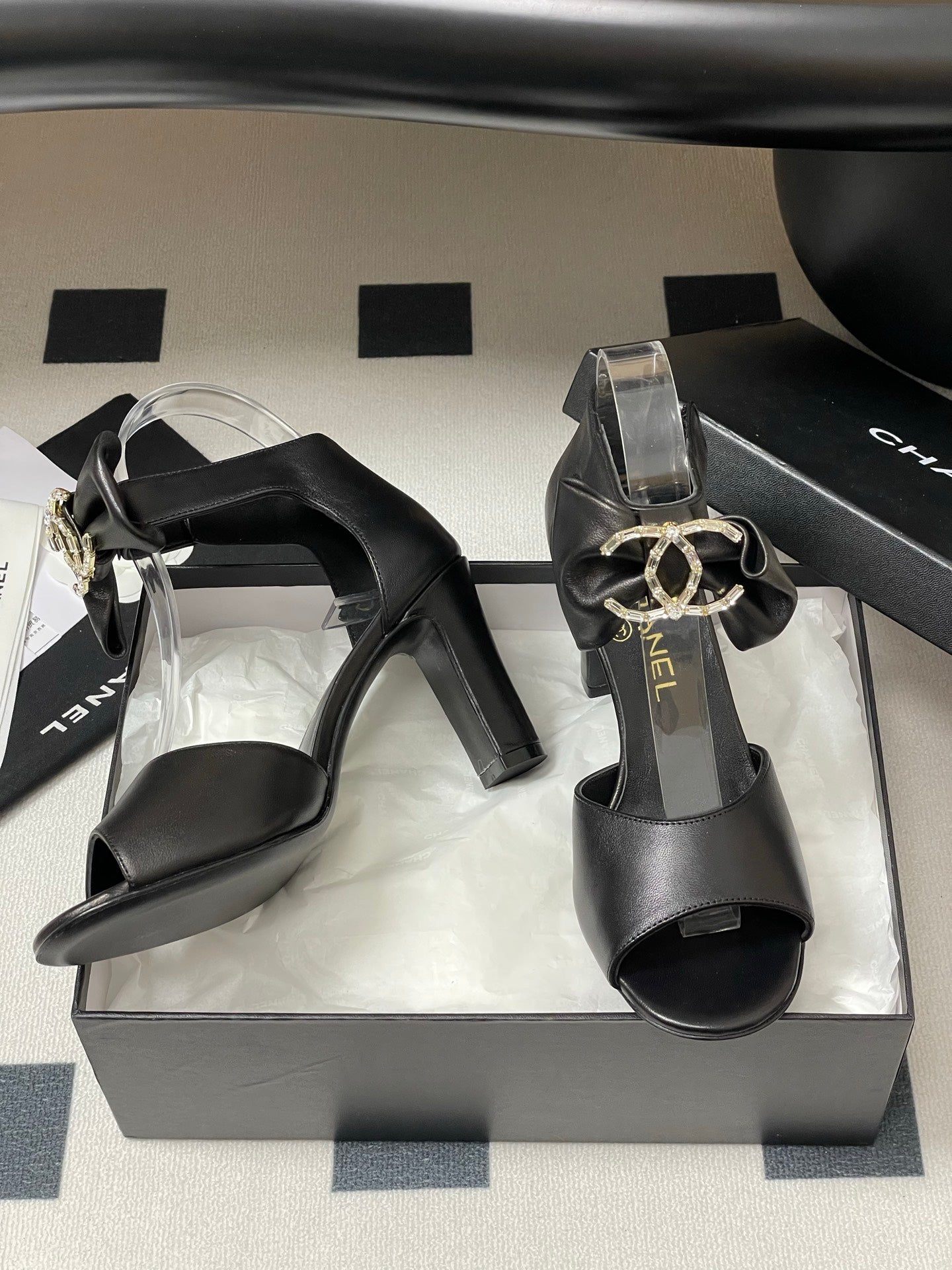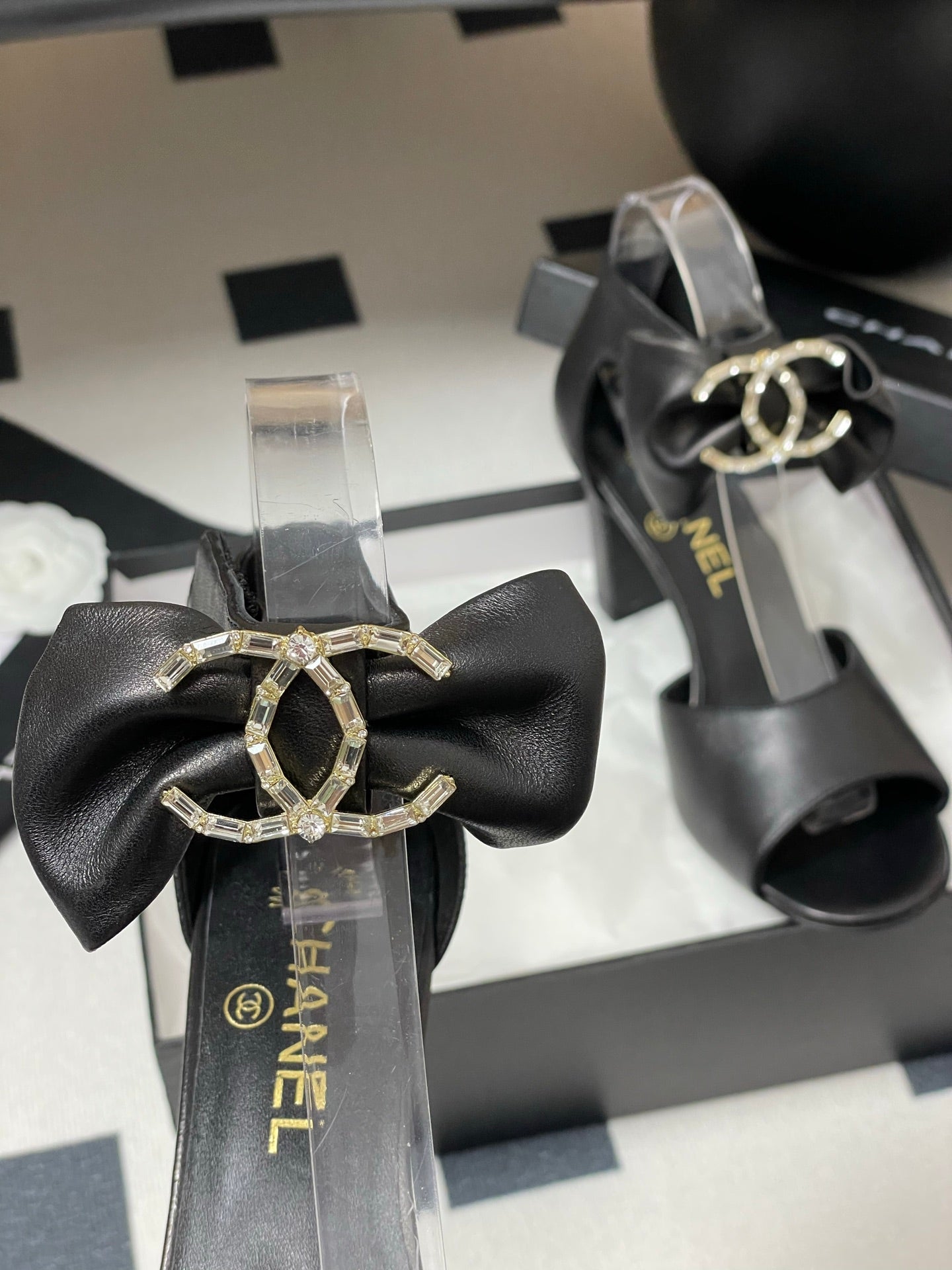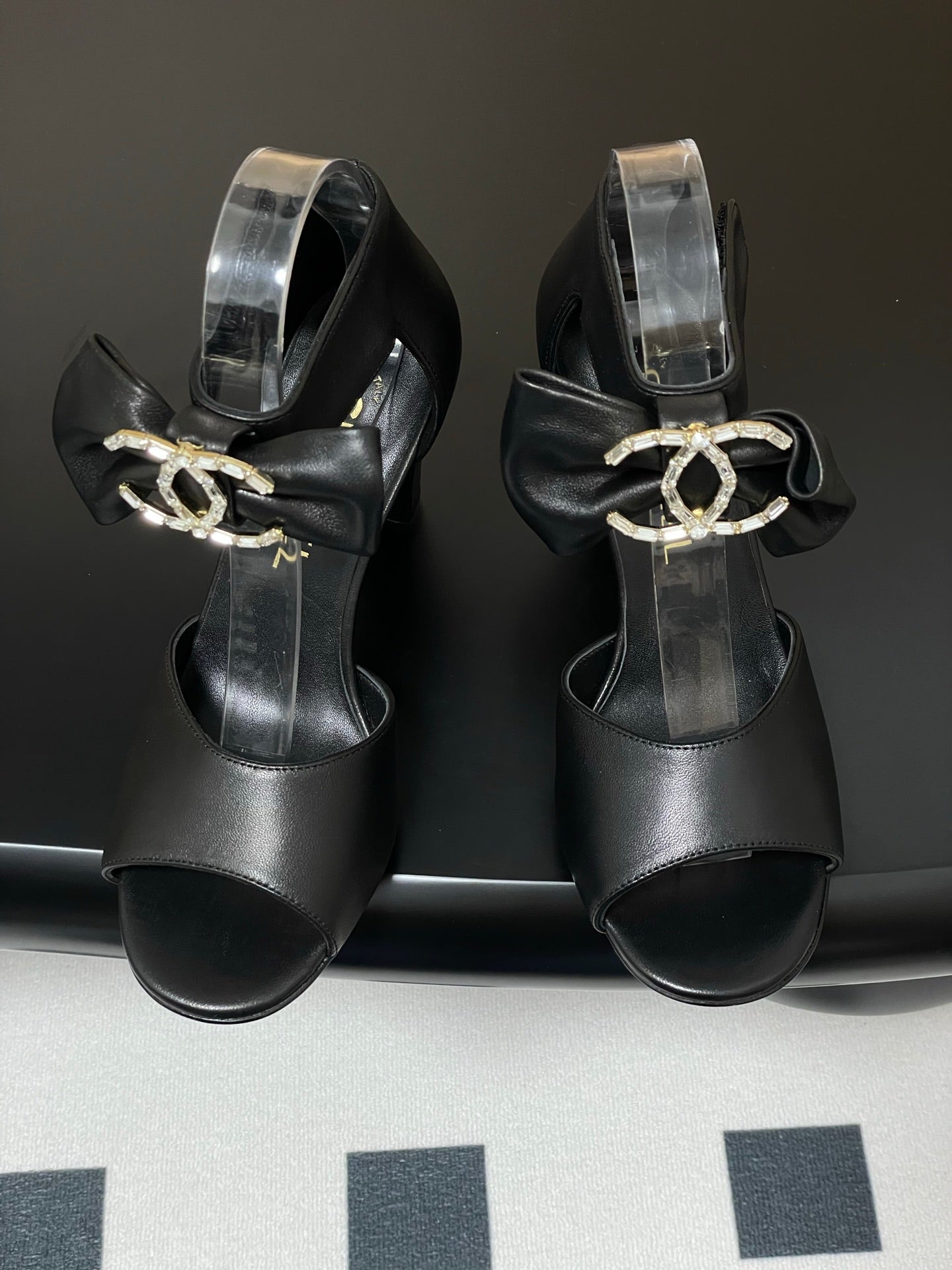 CC 25S Double C Rhinestone Buckle Bow High Heel Sandal 85 Black Sheepskin 247568