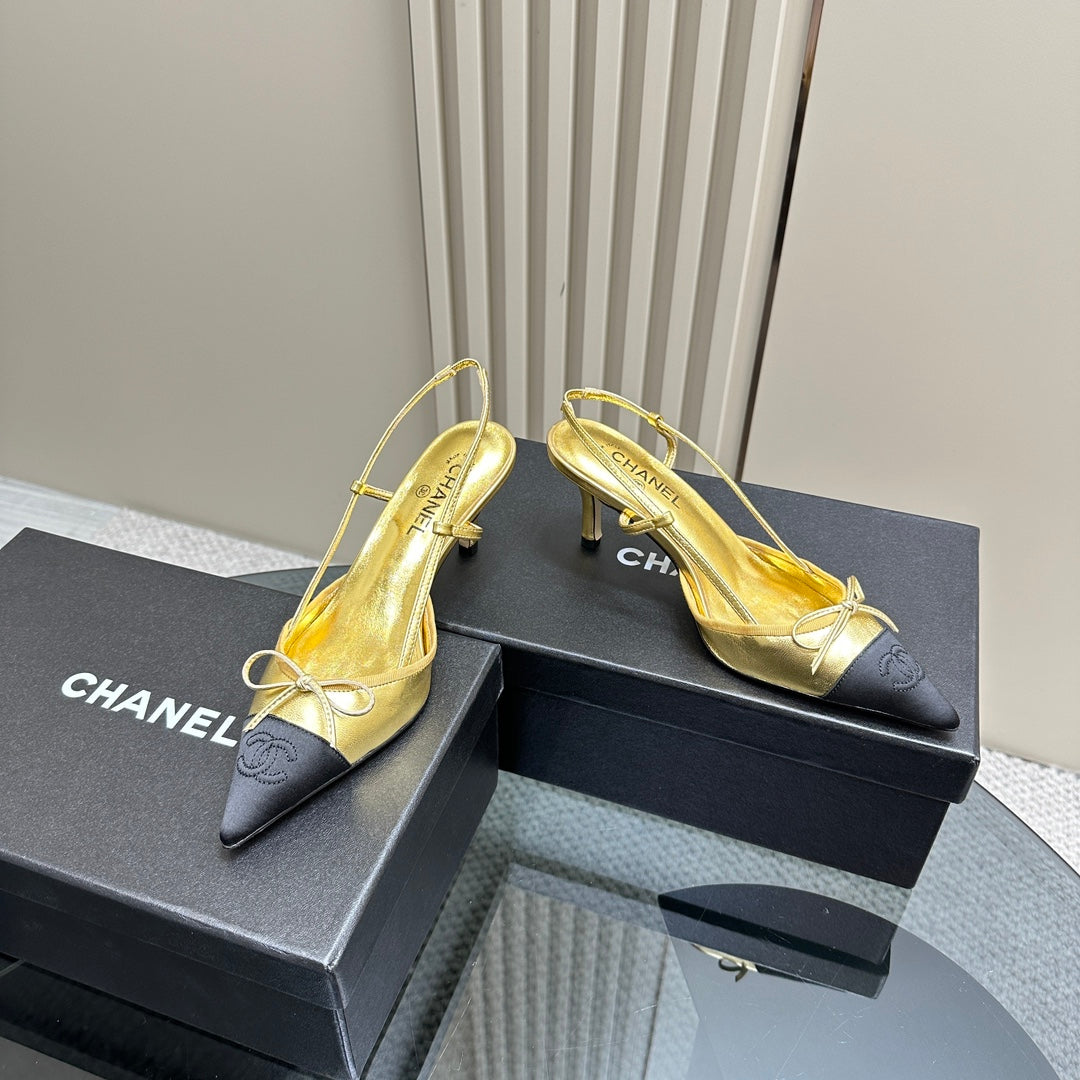 slingbacks 65 gold metalic black calfskin