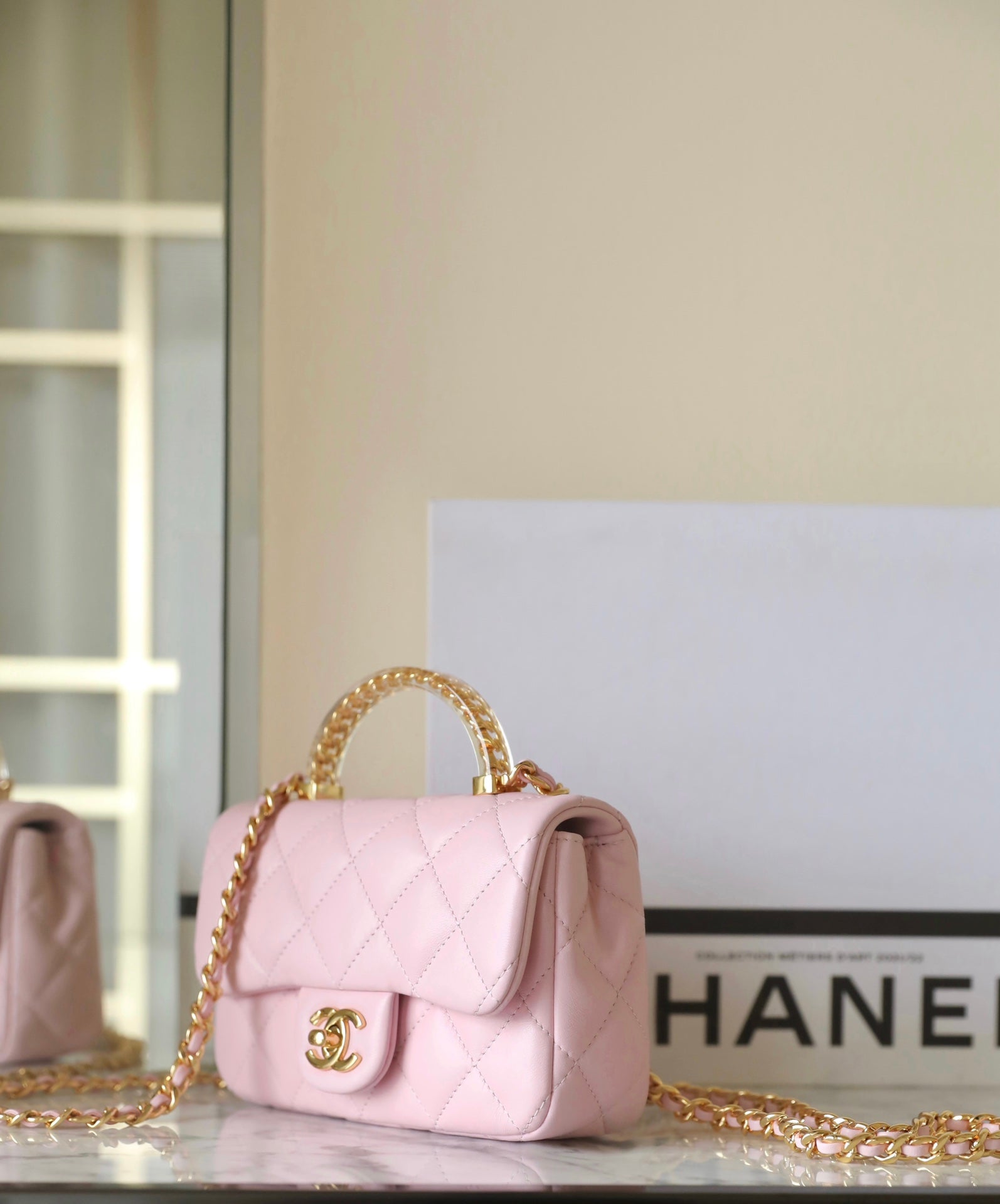 cc 24s flap bag 19cm top handle pink lambskin gold hardware