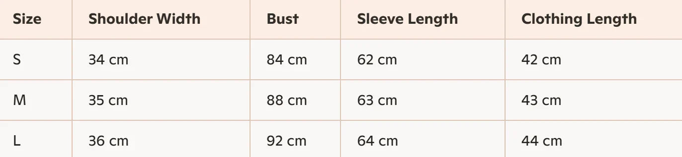 • Size : S, M, L