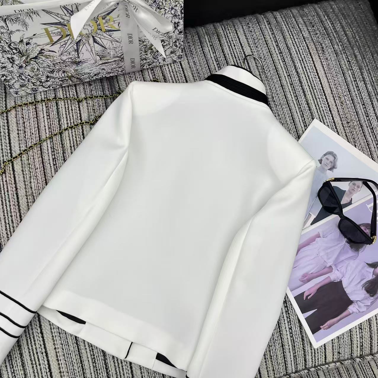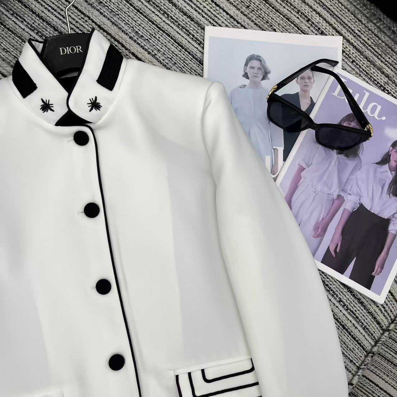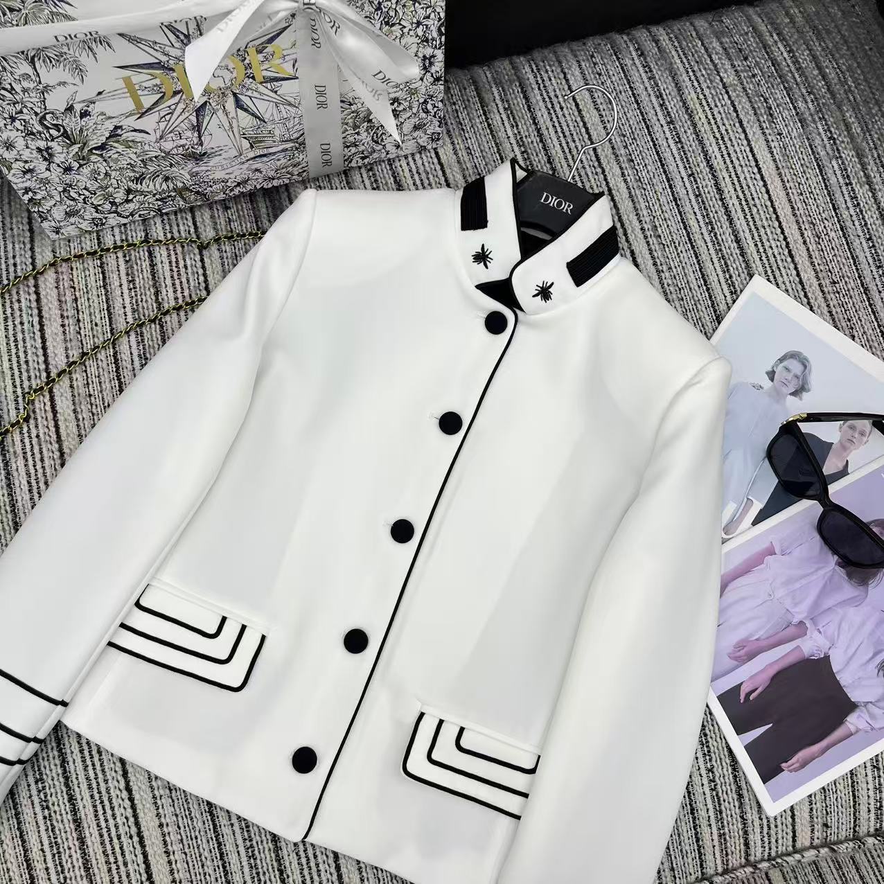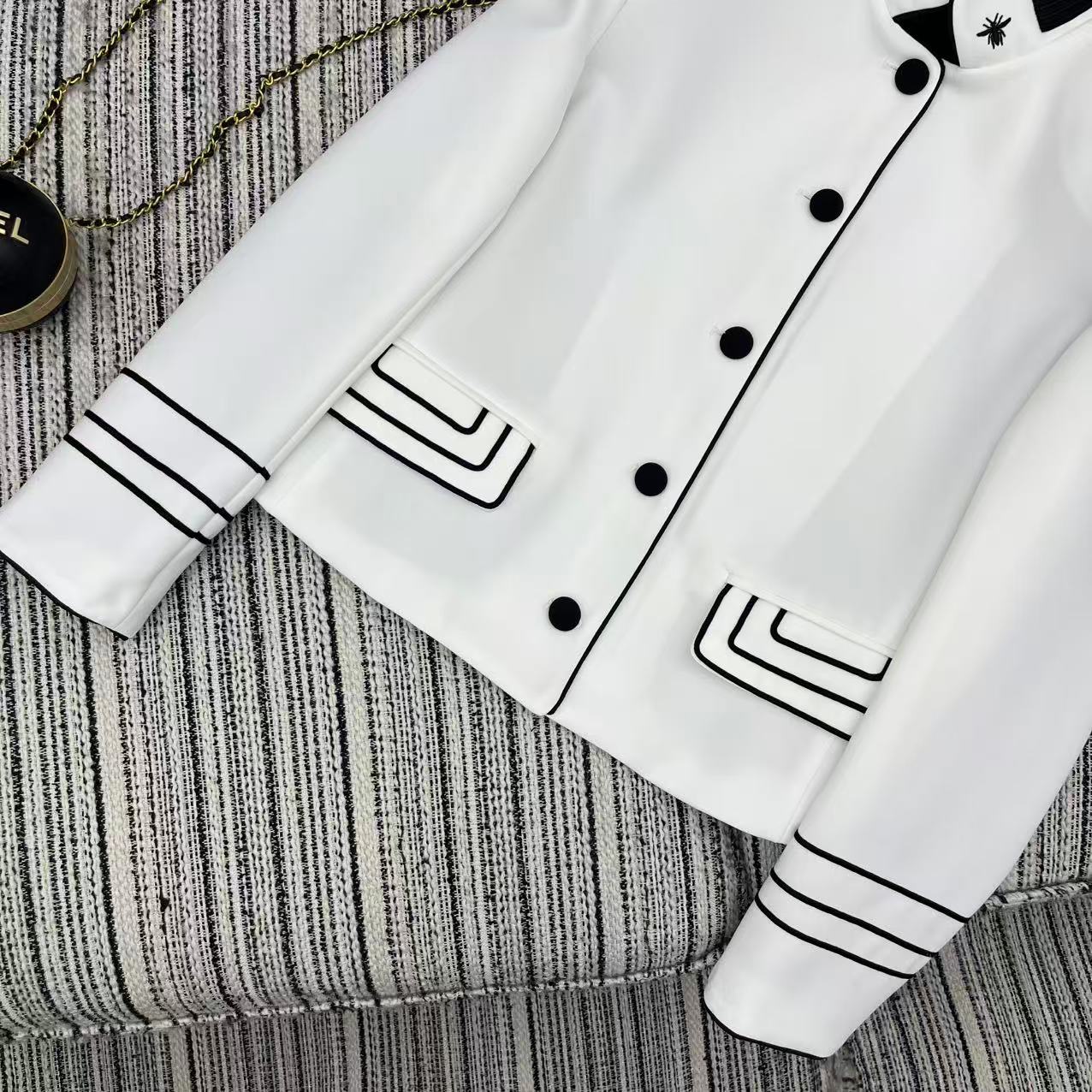 CD 25FW Stand Collar Black and White Contrast Polyester Suit Jacket