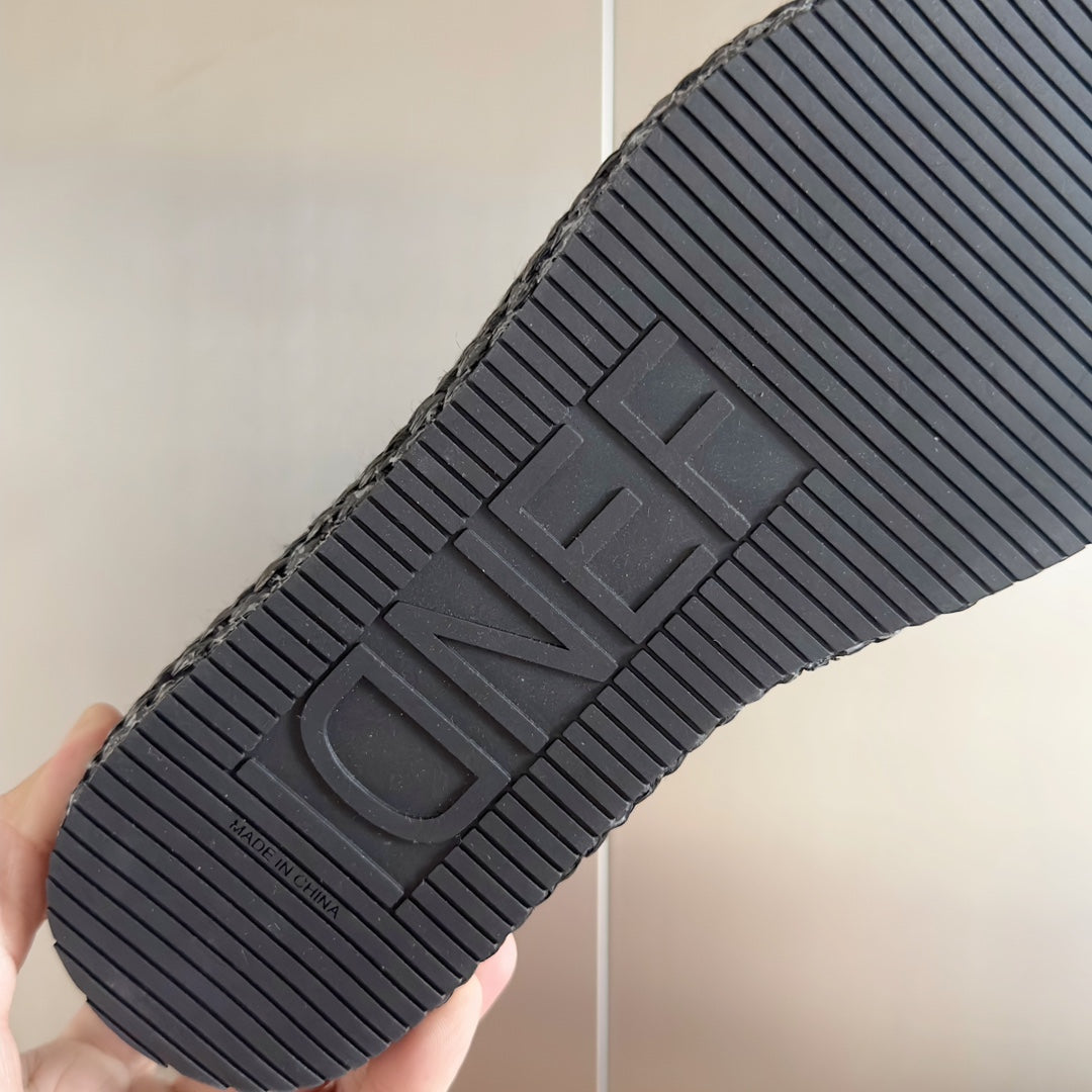 FENDI PLATFORM WEDGES IN BLACK MIX CHOCOLATE BROWN RAFFIA