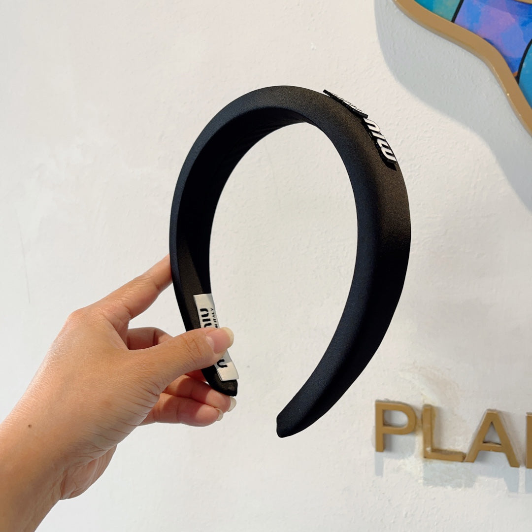 THICK HEAD BAND IN BLACK SILK WHITE LOGO 415944