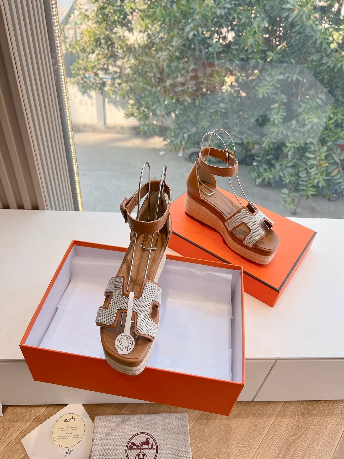 HM 25C Elda espadrille Brown Mix White Denim and Goatskin 202834