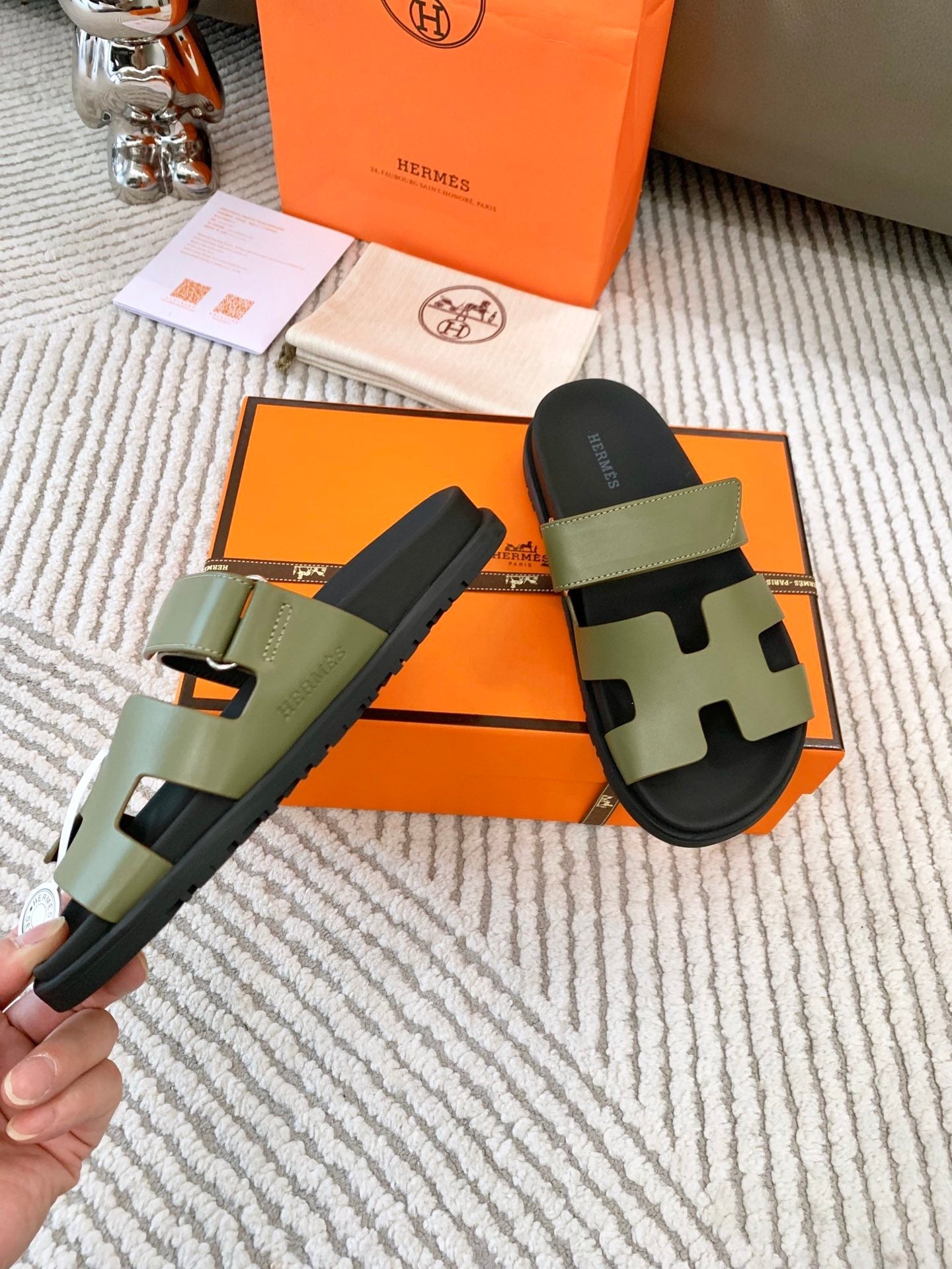 HM Chypre Sandal Khaki Green Mix Black Leather 963528