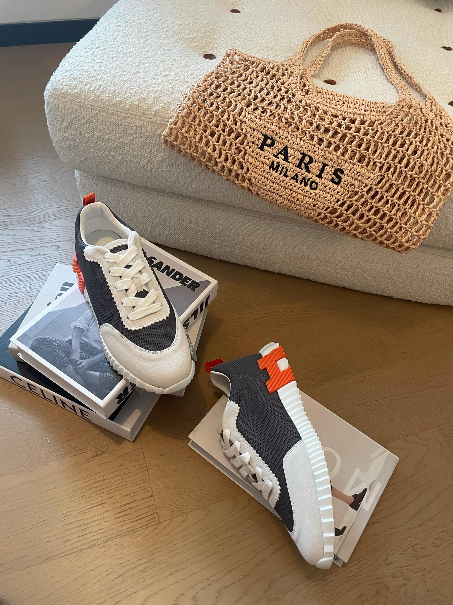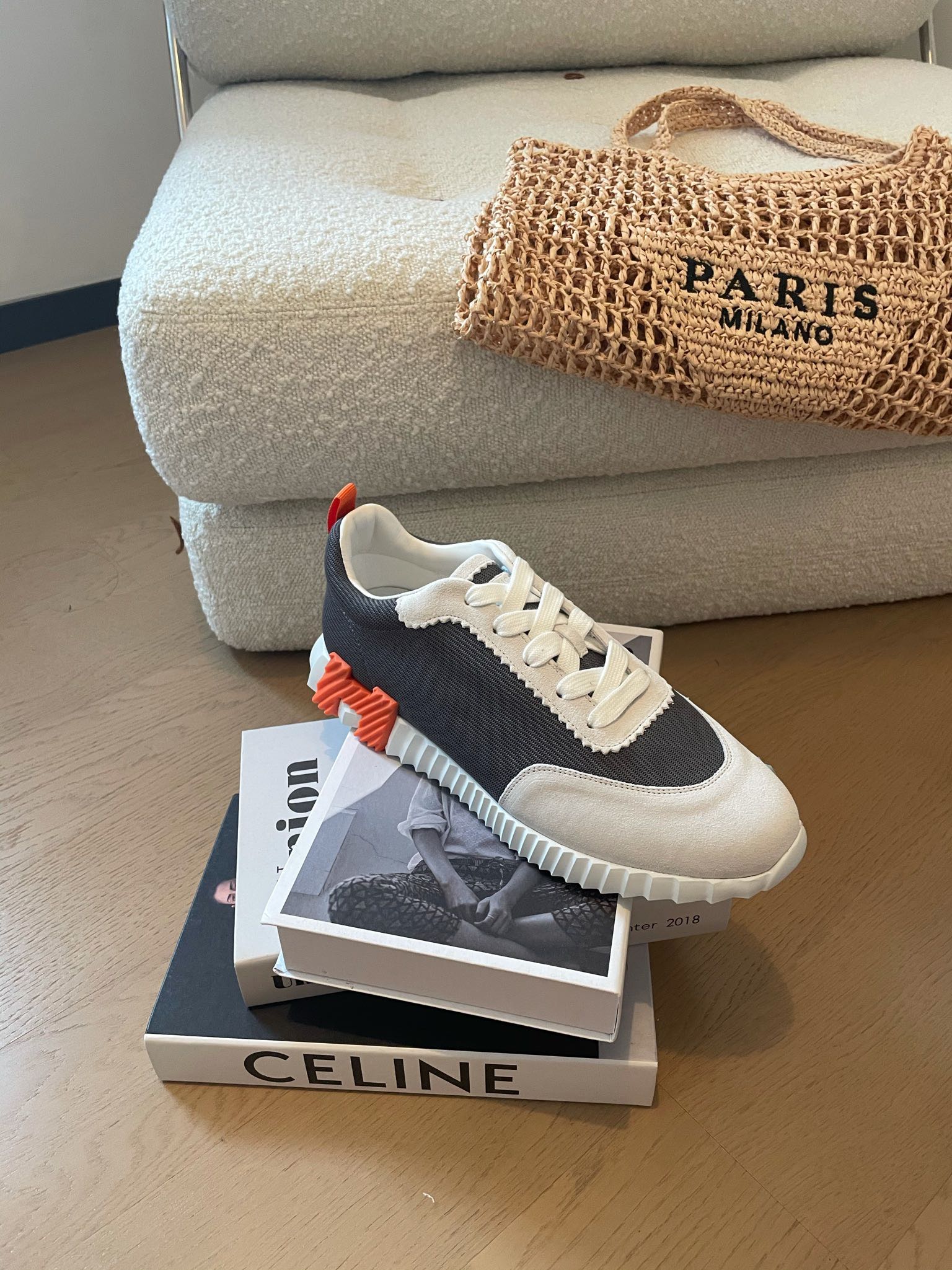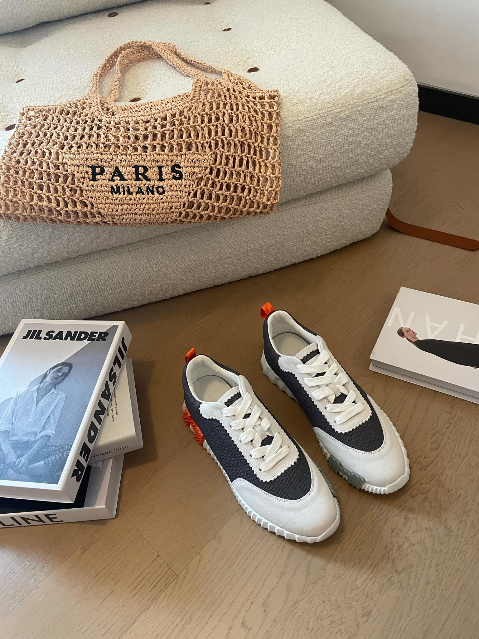 HM Bouncing 35 Sneakers Black Canvas White Suede Goatskin H Seafoam Orange