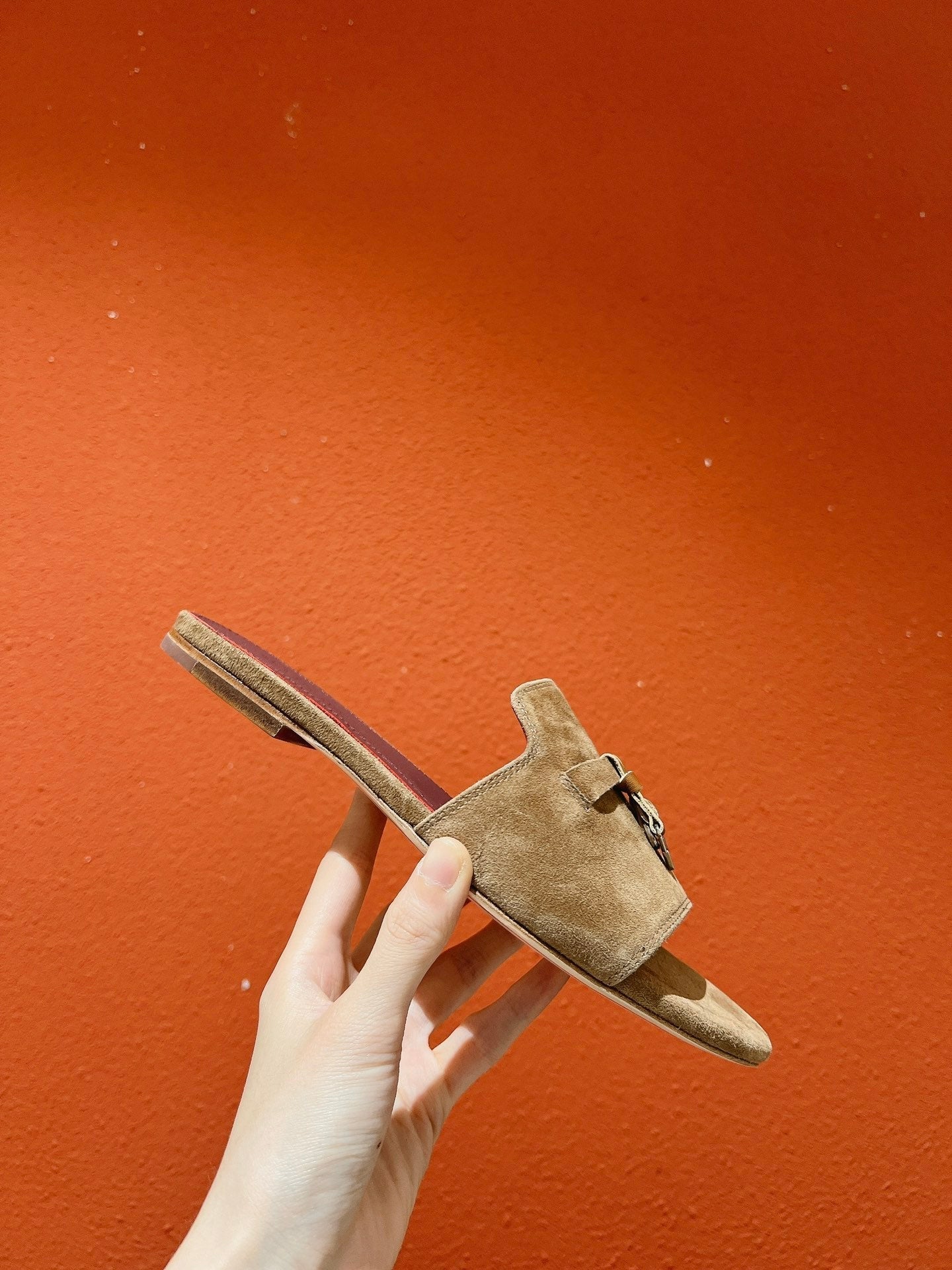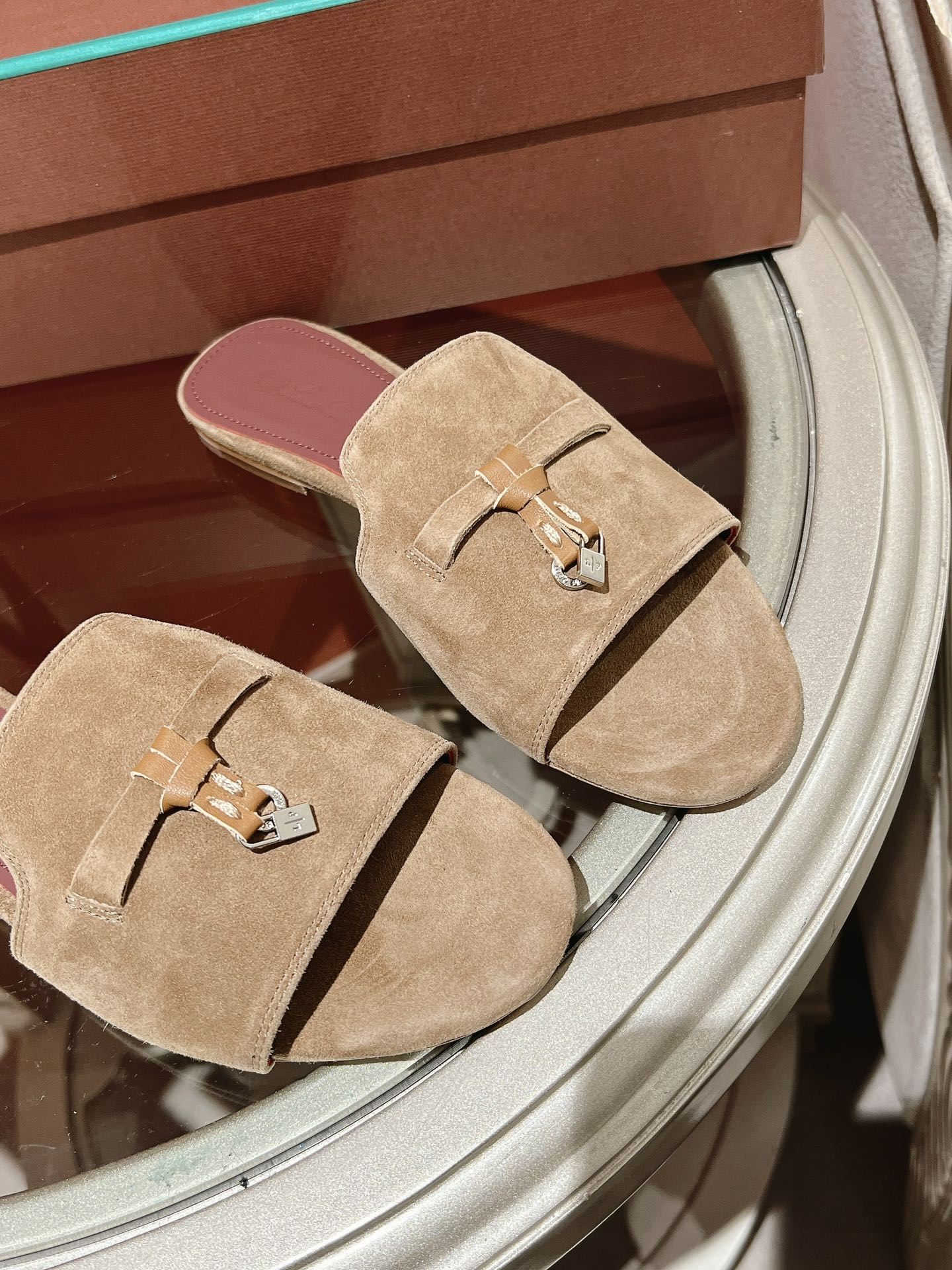 Summer Charms Sandals in Mocha Suede Maroon Lambskin