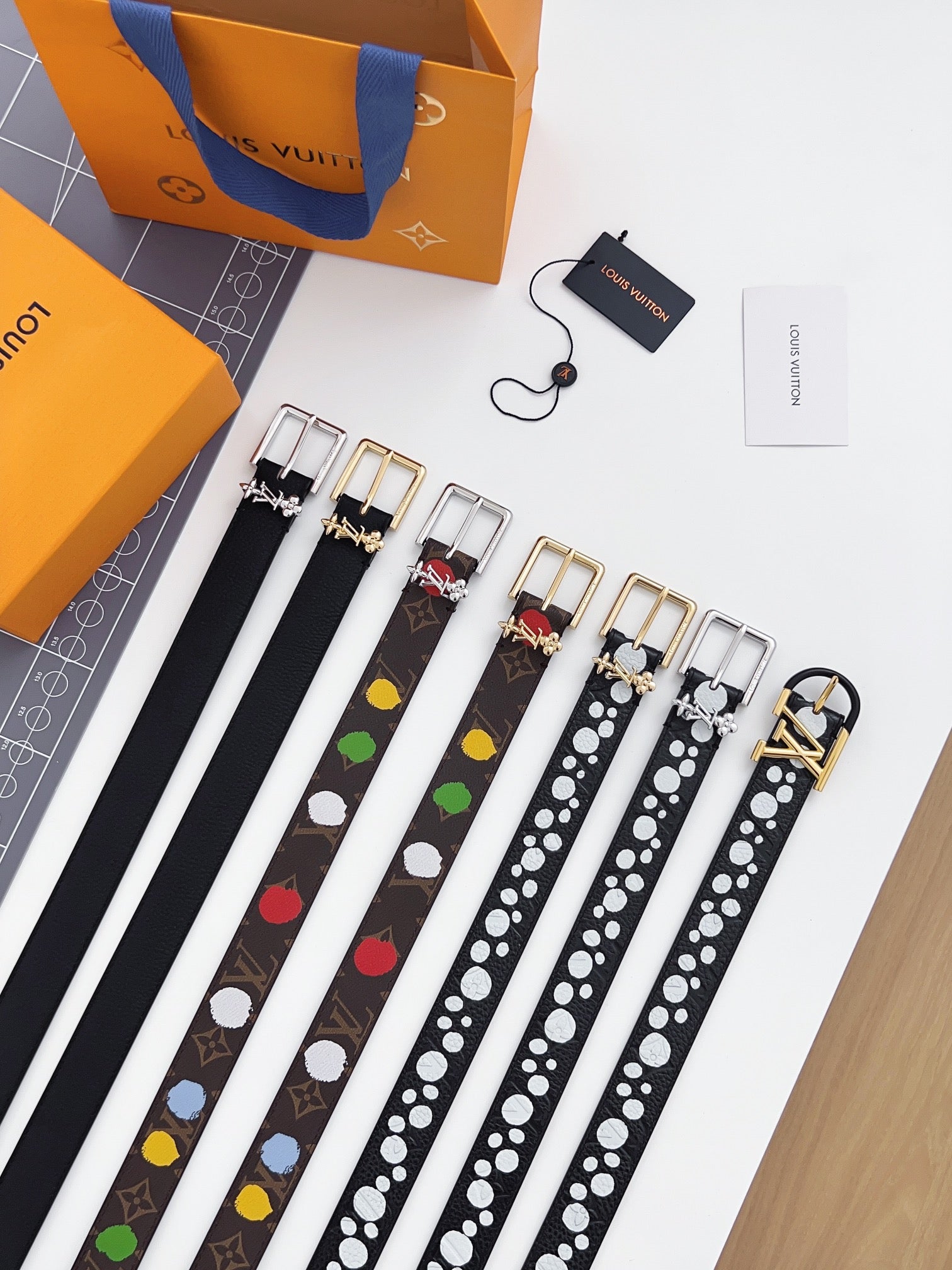 LV Bloom 30mm Belt Gold Buckle Black White Leather