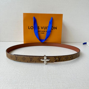 LV Flowergram 20mm Reversible Belt Brown Calfskin