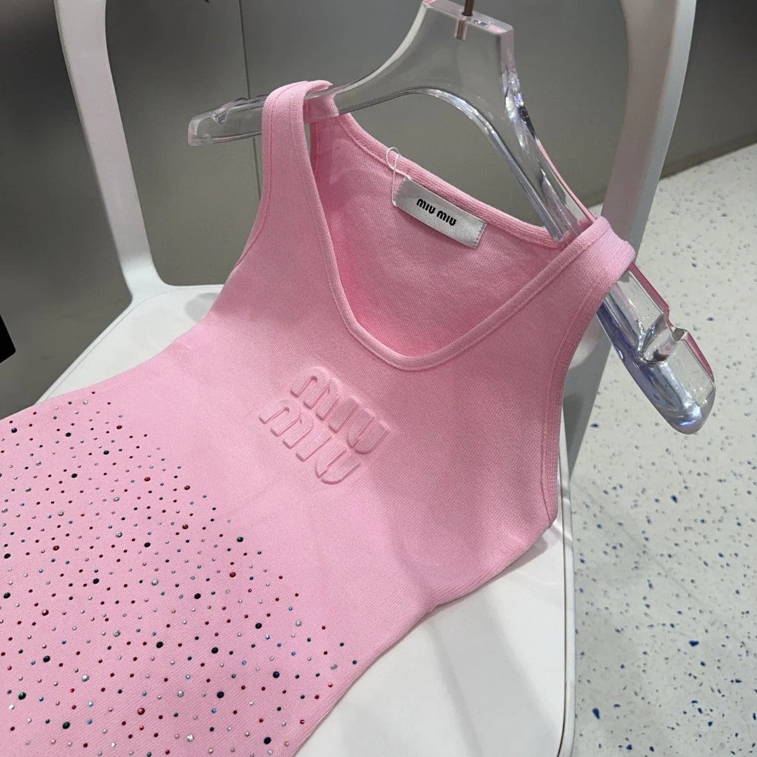 TANK TOP 640625 IN PINK COTTON MUTILCOLOR CRYSTAL
