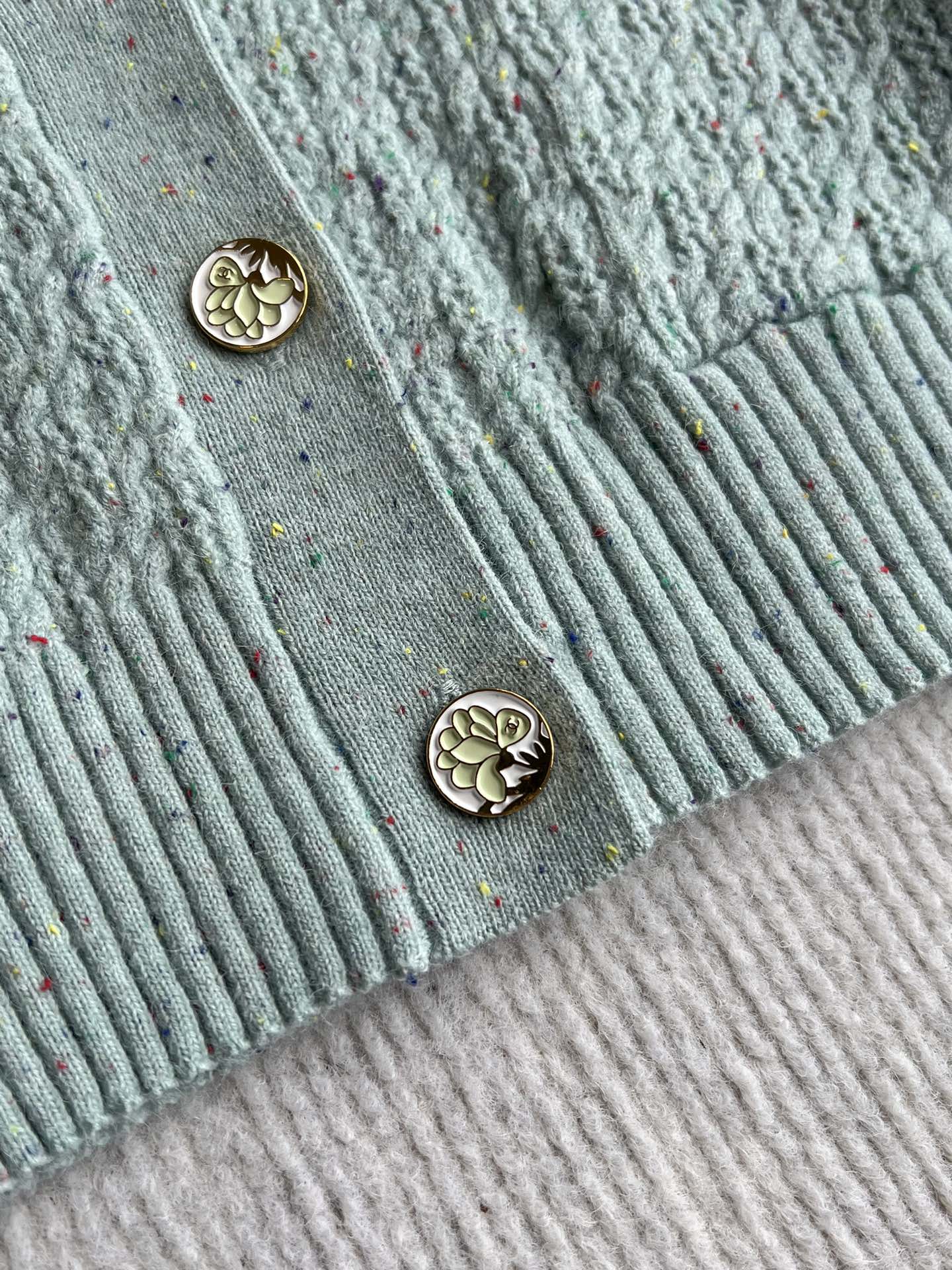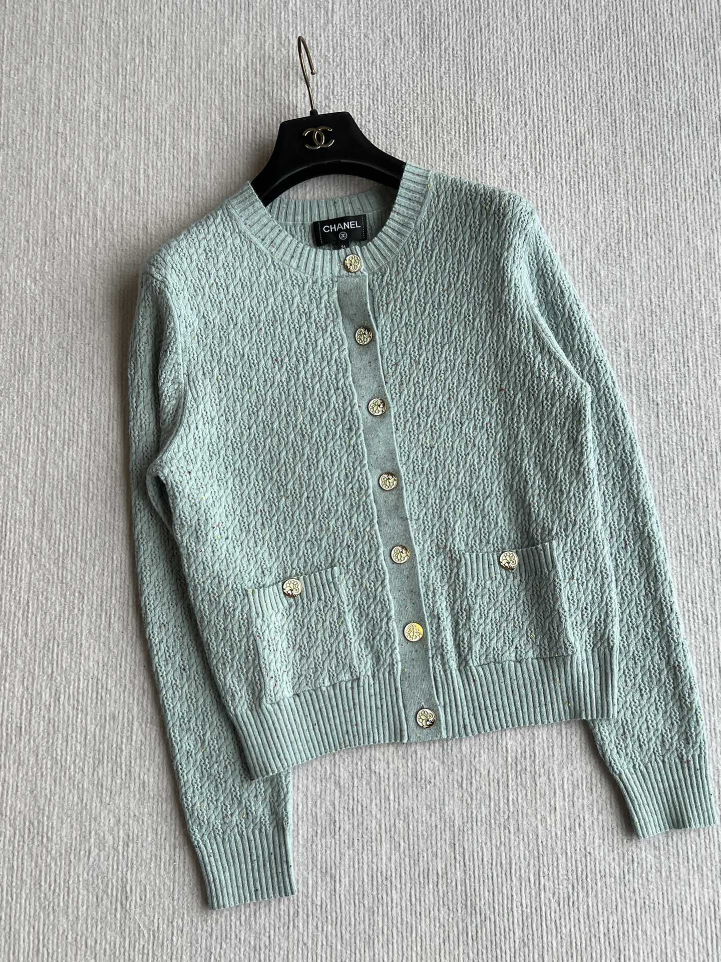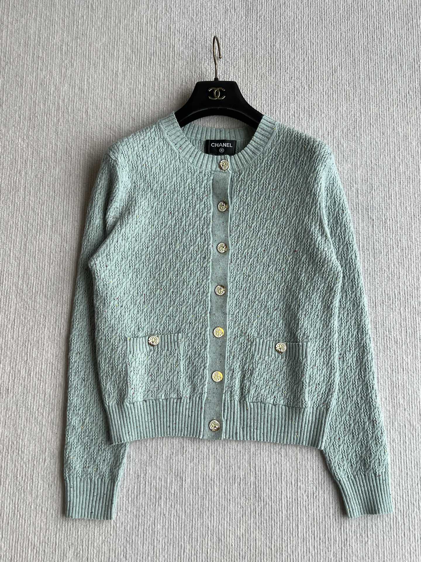 CC 25A Classic Round Neck Floral Wool Cardigan In Turquoise 275514