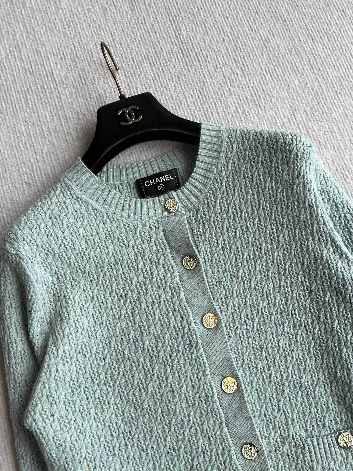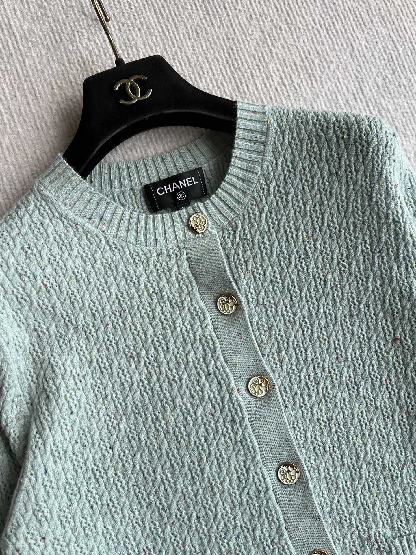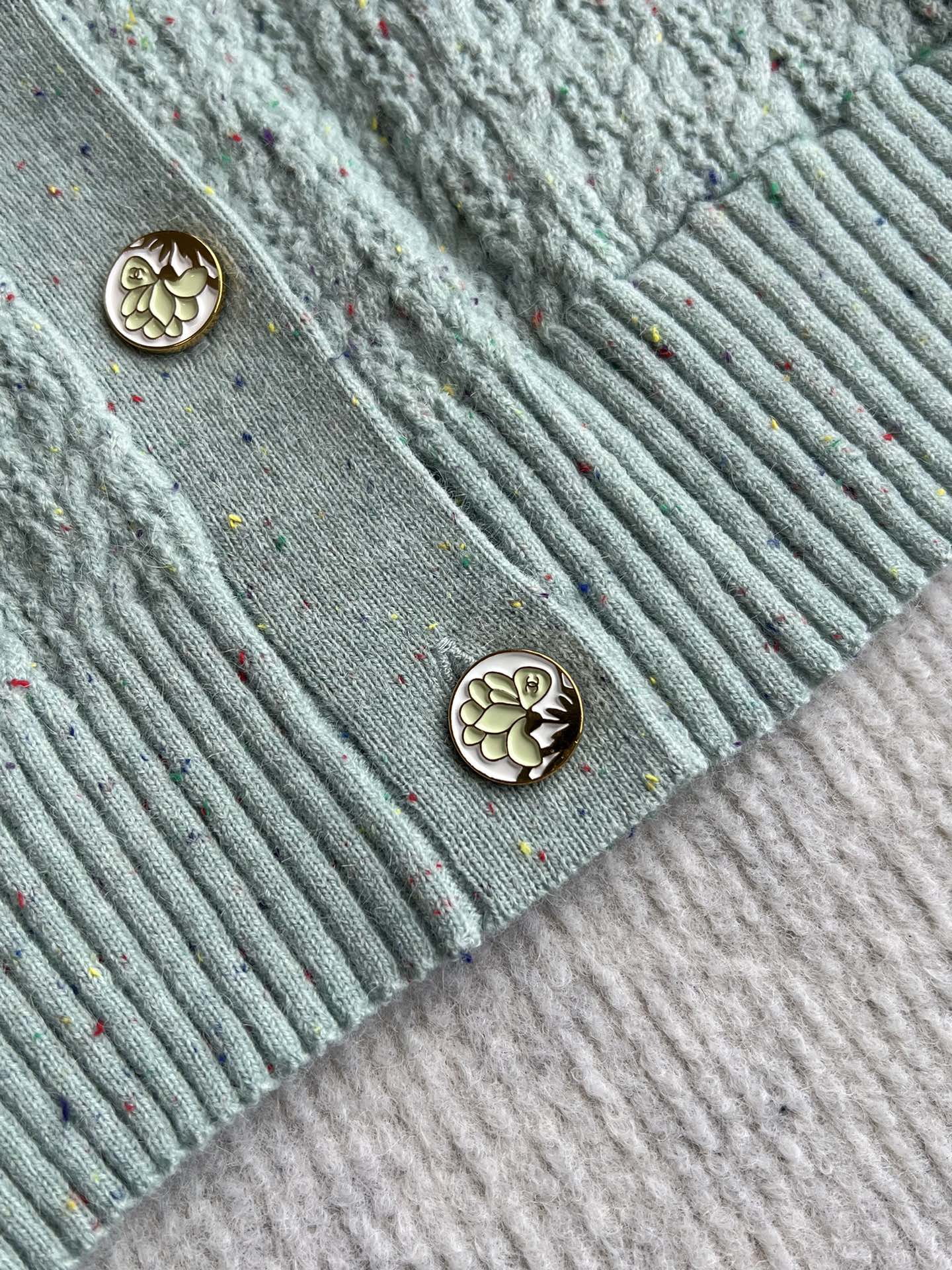 CC 25A Classic Round Neck Floral Wool Cardigan In Turquoise 275514