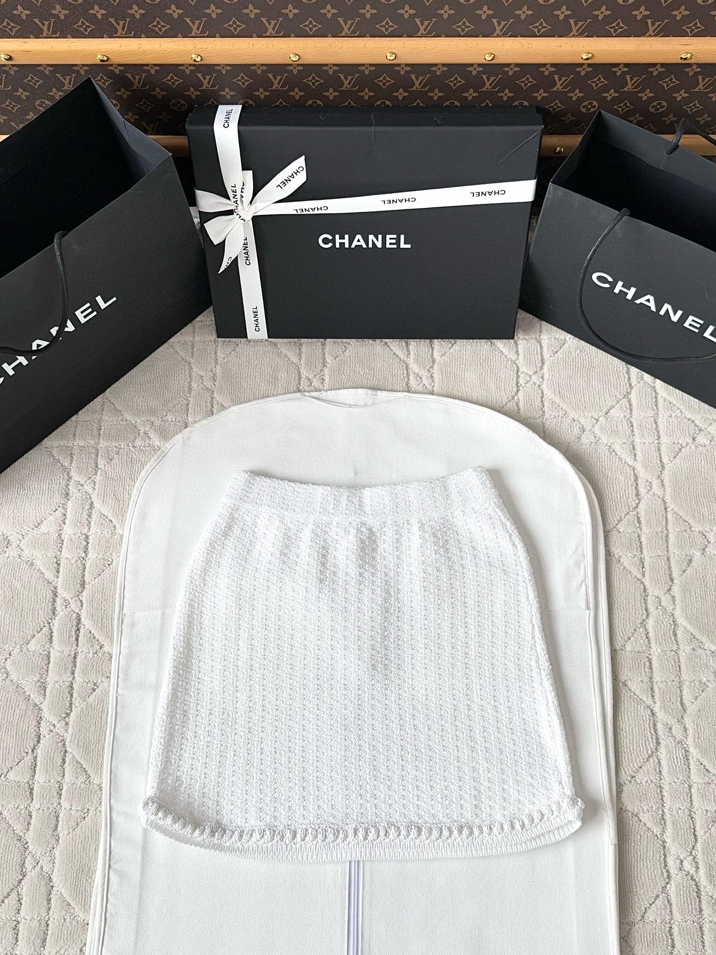 Chanel 25P Mini Skirt White Tweed 237298