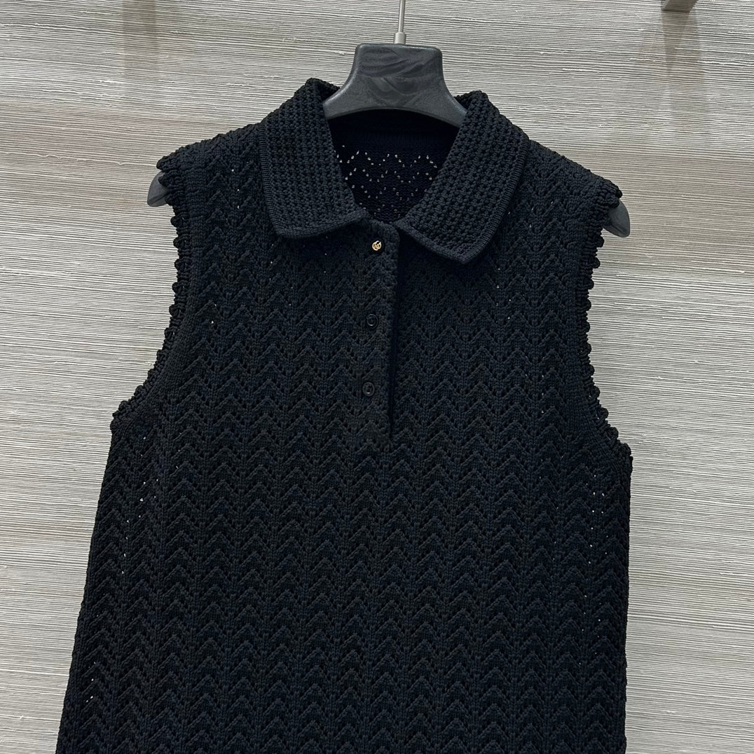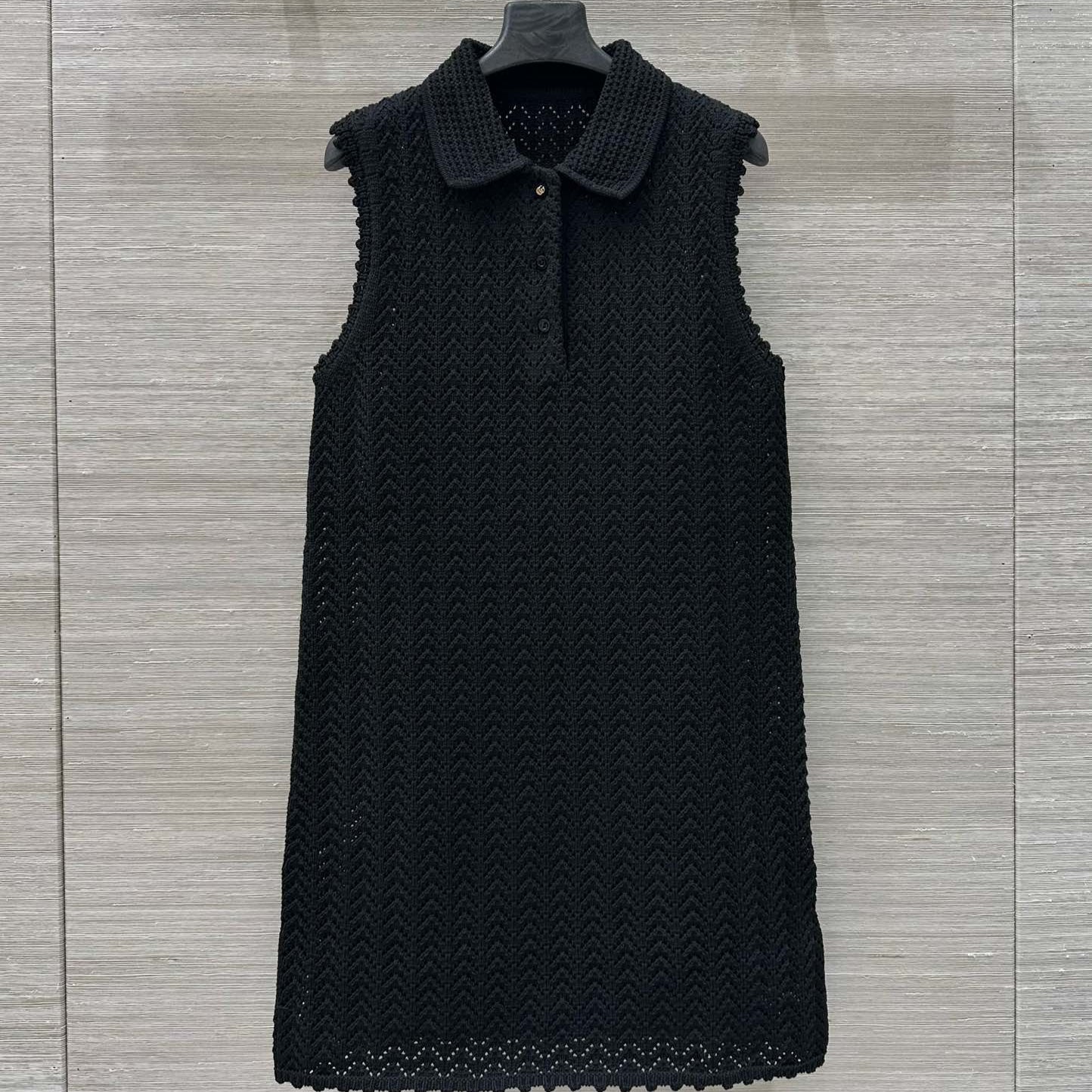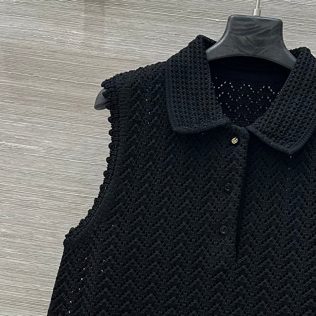 Gucci 25 Hollow Knitted Polo Vest Dress Black Polyester Fiber