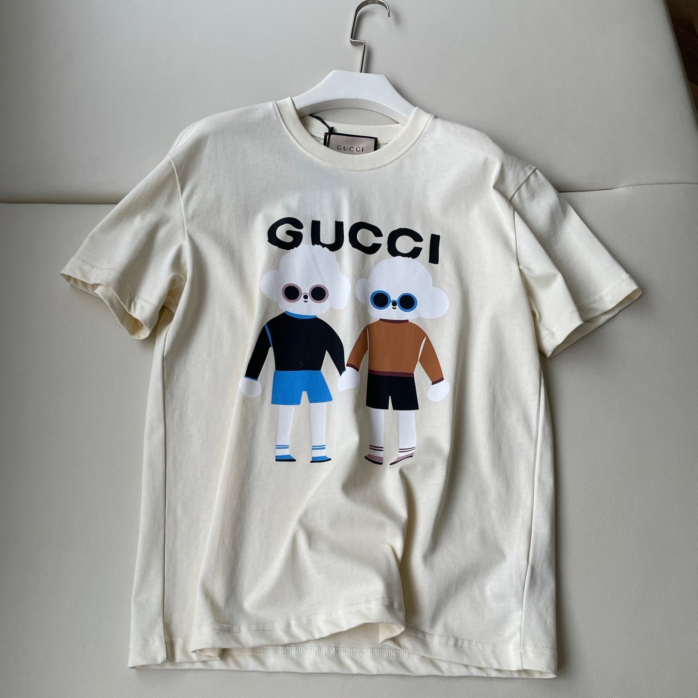 Gucci 25 Teddy Dog T-shirt Ivory Brown Black Cotton
