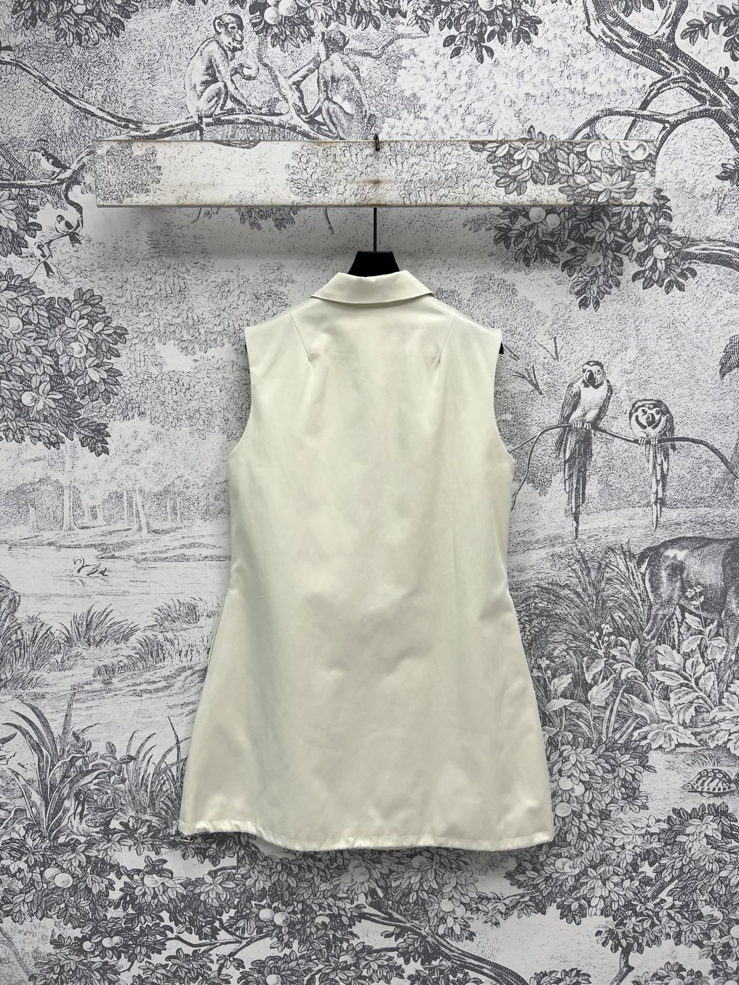 Prada 25 Sleeveless Dress Beige Cotton Polyester