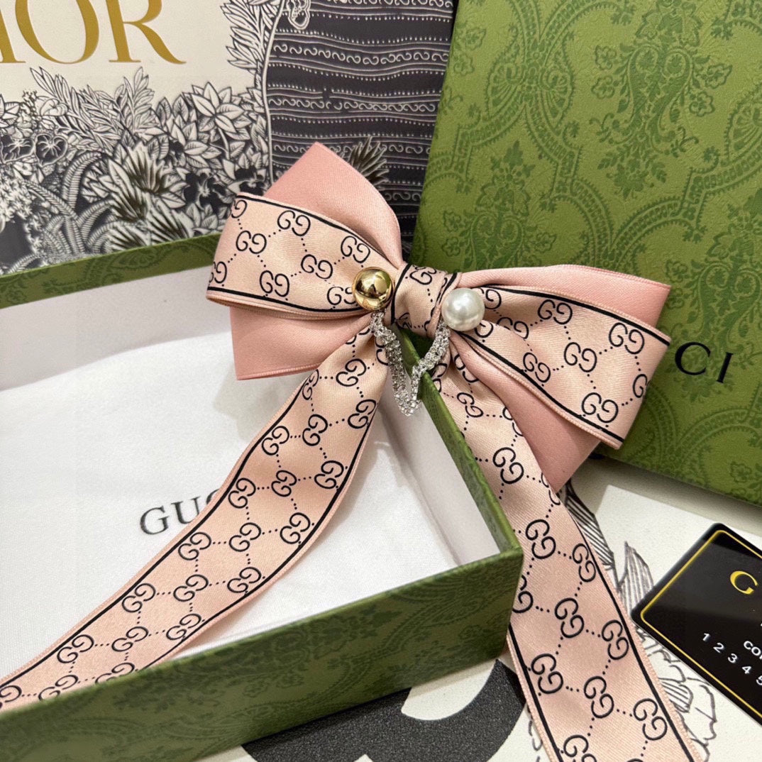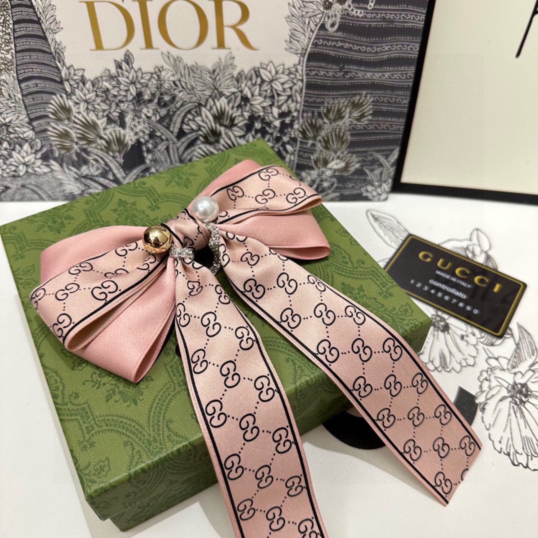 RIBBON BOW HAIR CLIP IN BABY PINK RE-NYLON ATTACHED PEARL 358259