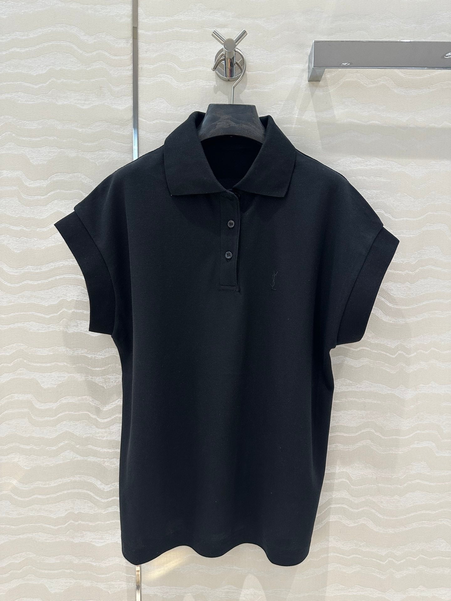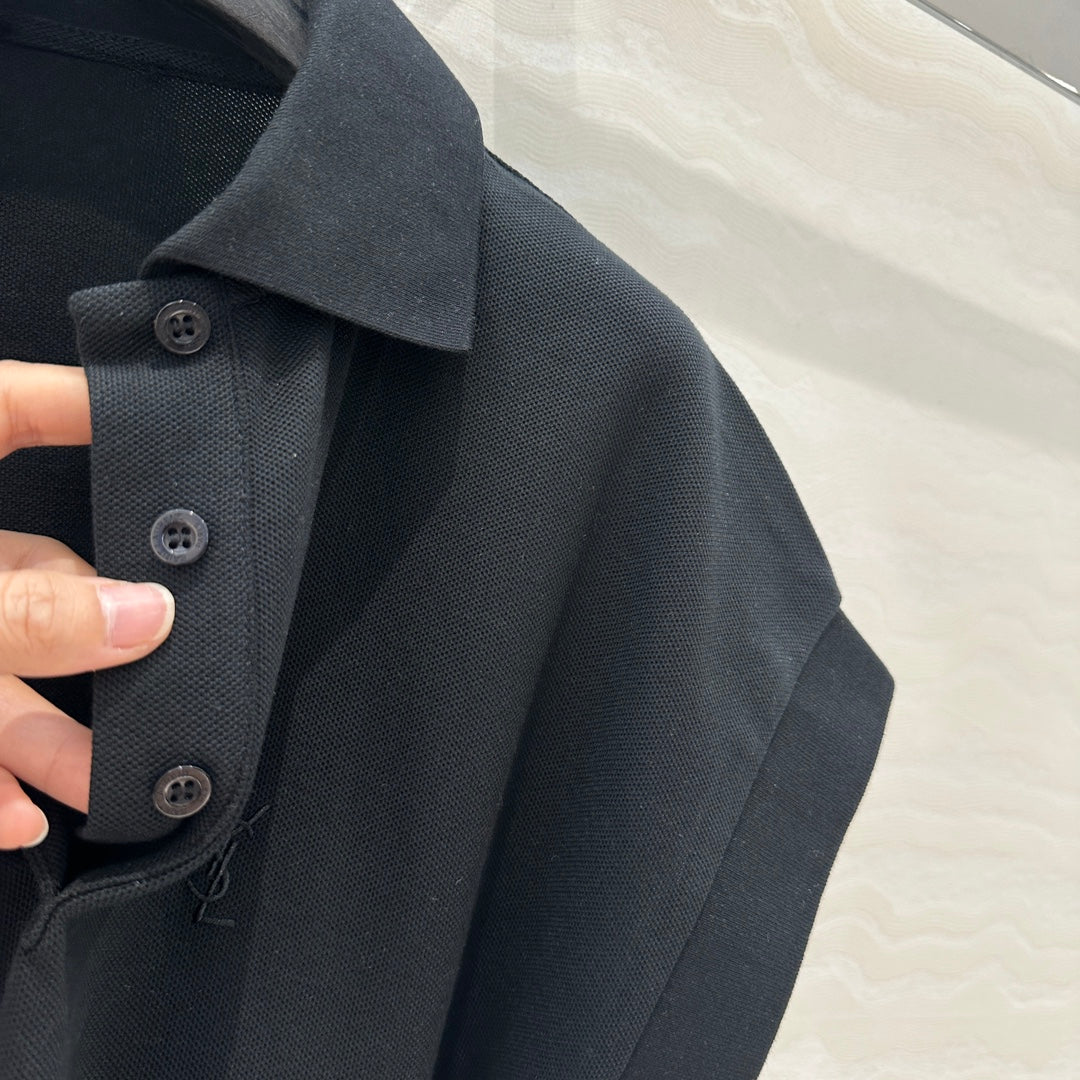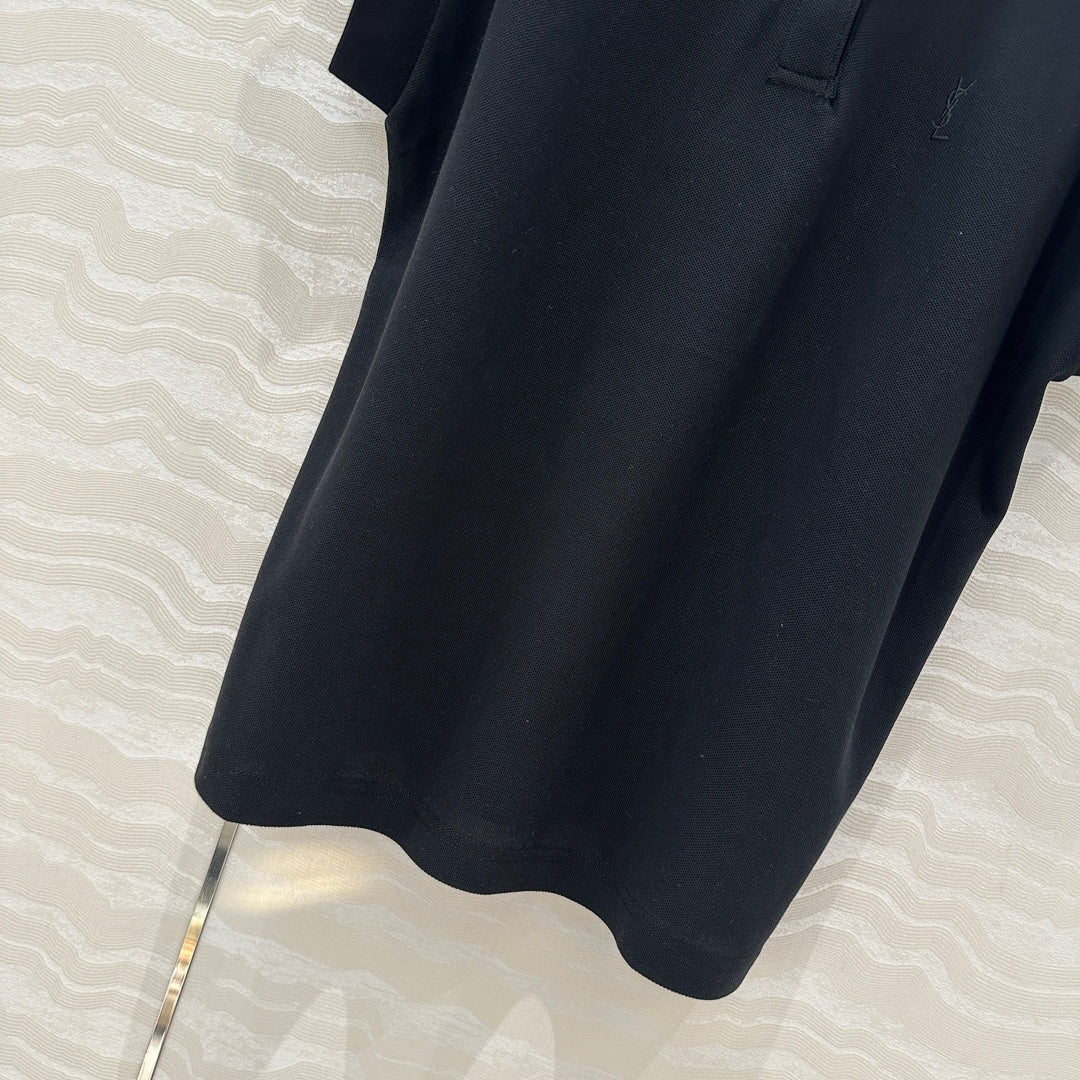 YSL Polo Collar T-shirt Black Cotton Polyester