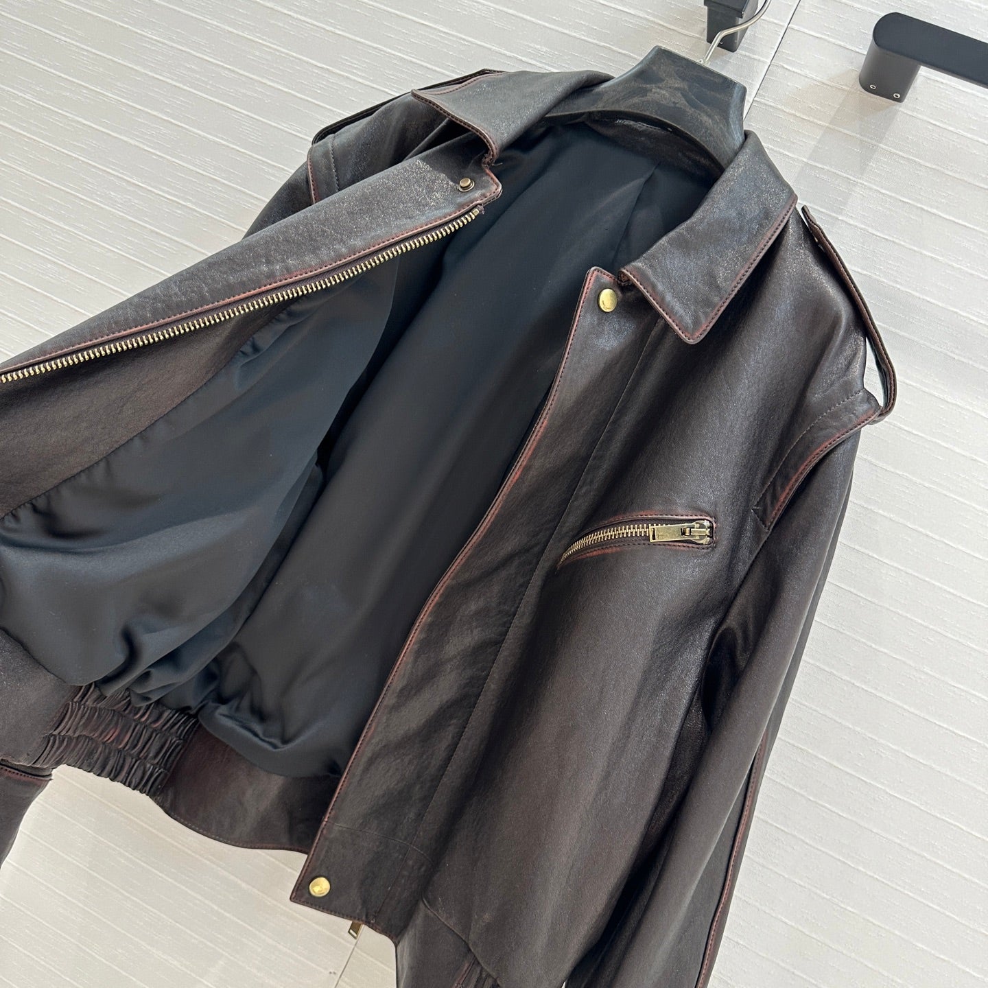 YSL Right-angle Shoulder Silhouette Jacket Black Brown Lambskin