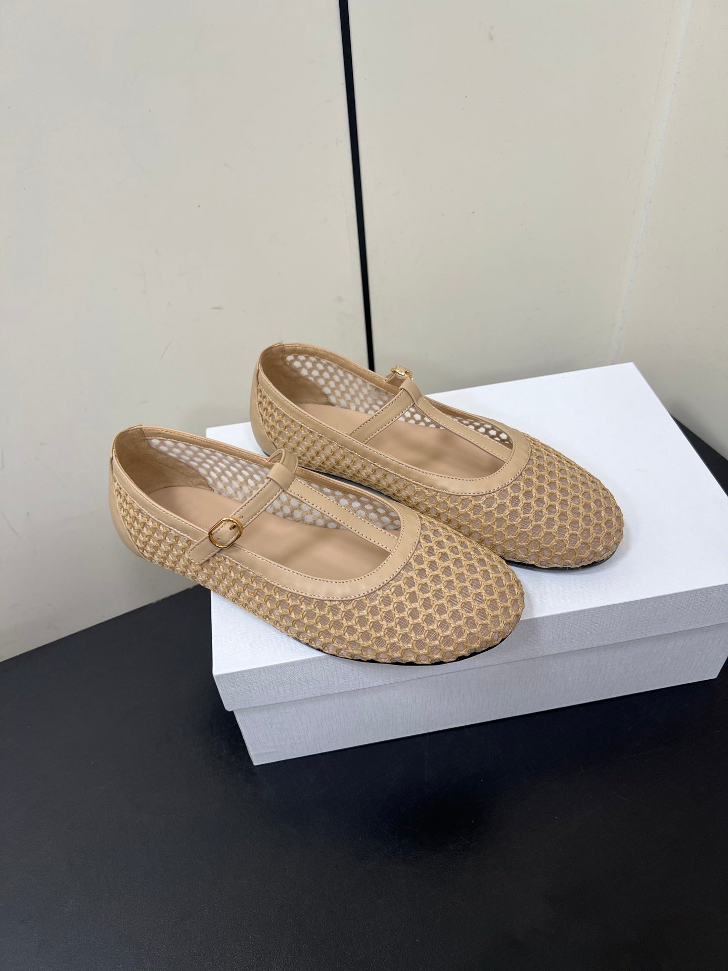 The Row 25ss Square T-Strap Flat Beige Mesh Cowhide 340039
