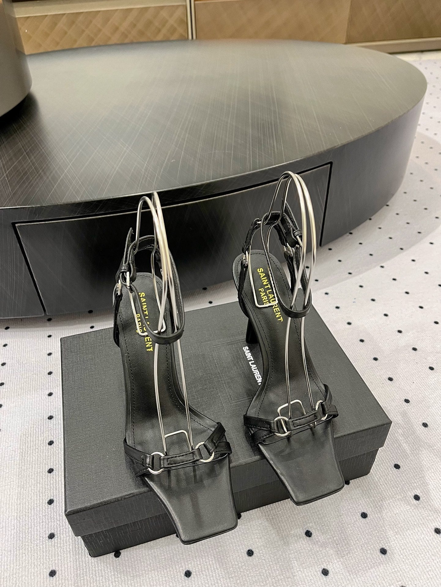 SL ANKLE-BUCKLE HEELED SANDALS BLACK CALFSKIN