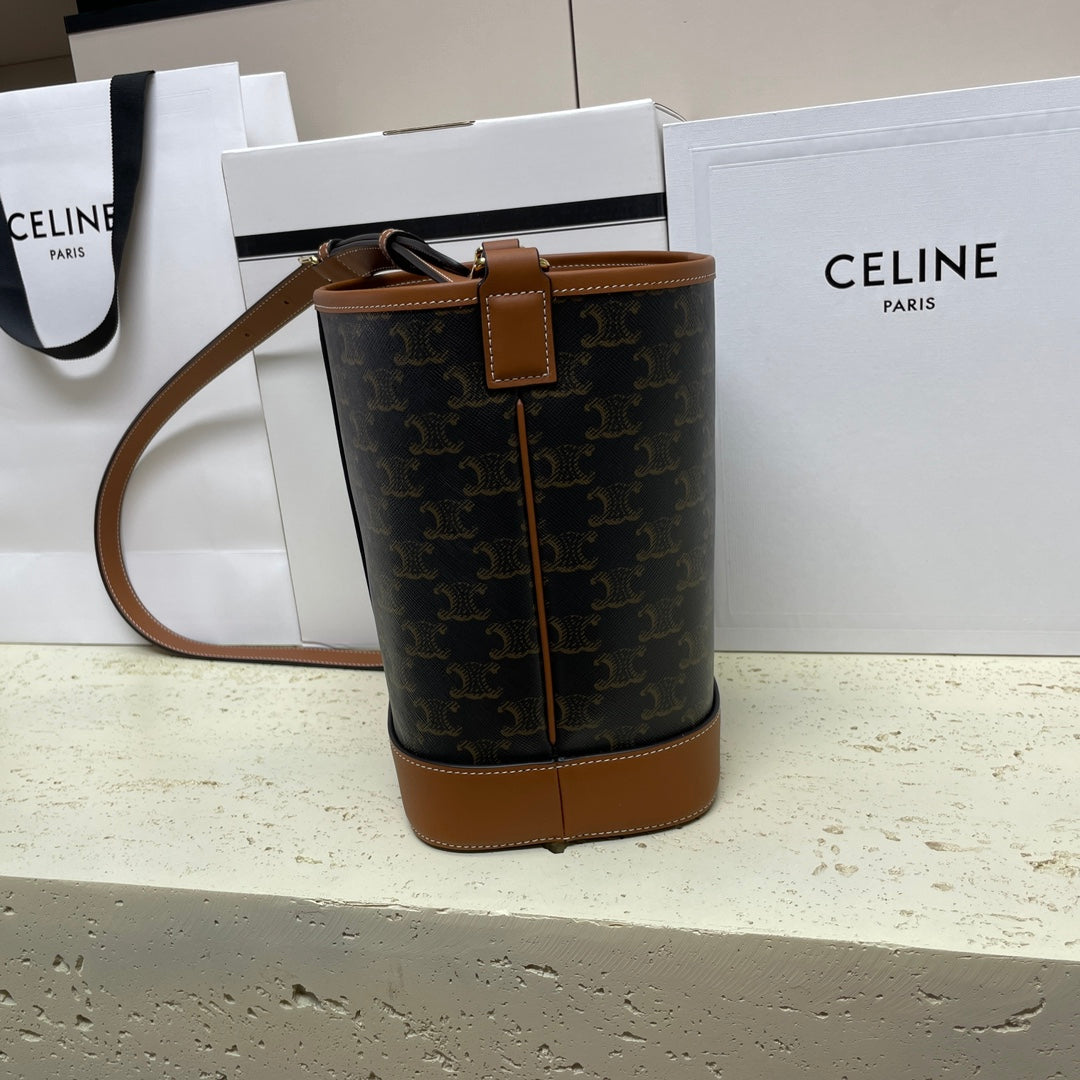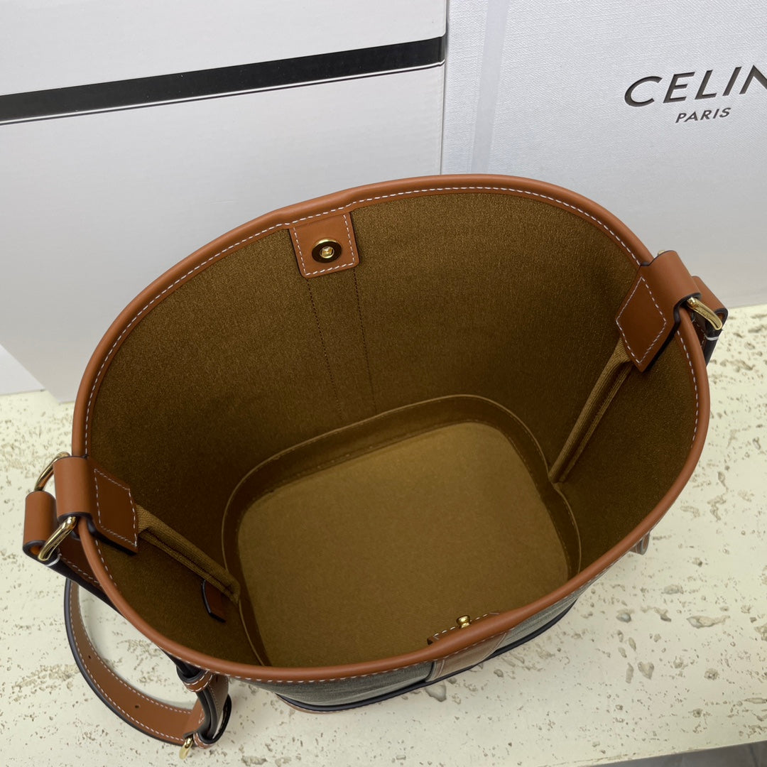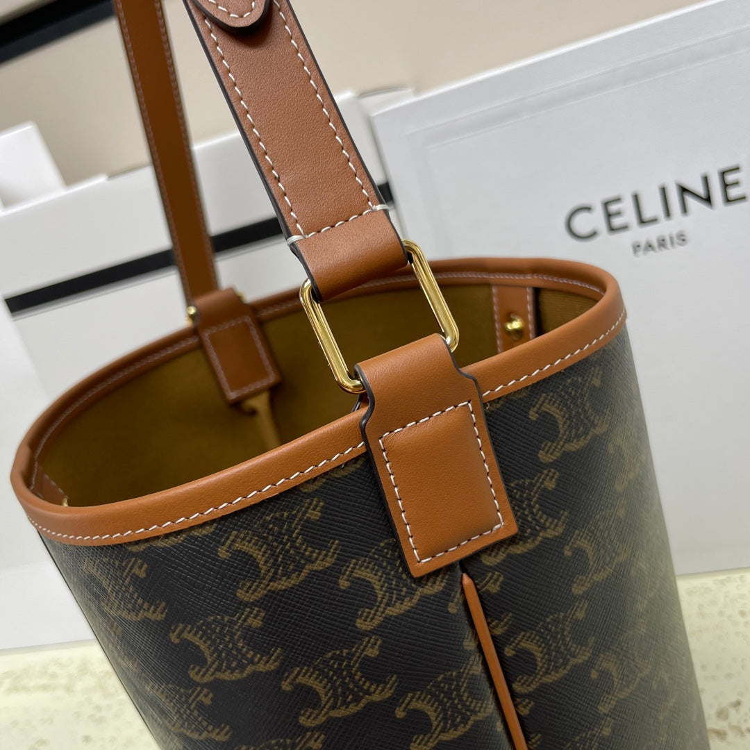 Celin Triomphe Canvas Bucket Bag Brown Cowhide 131737