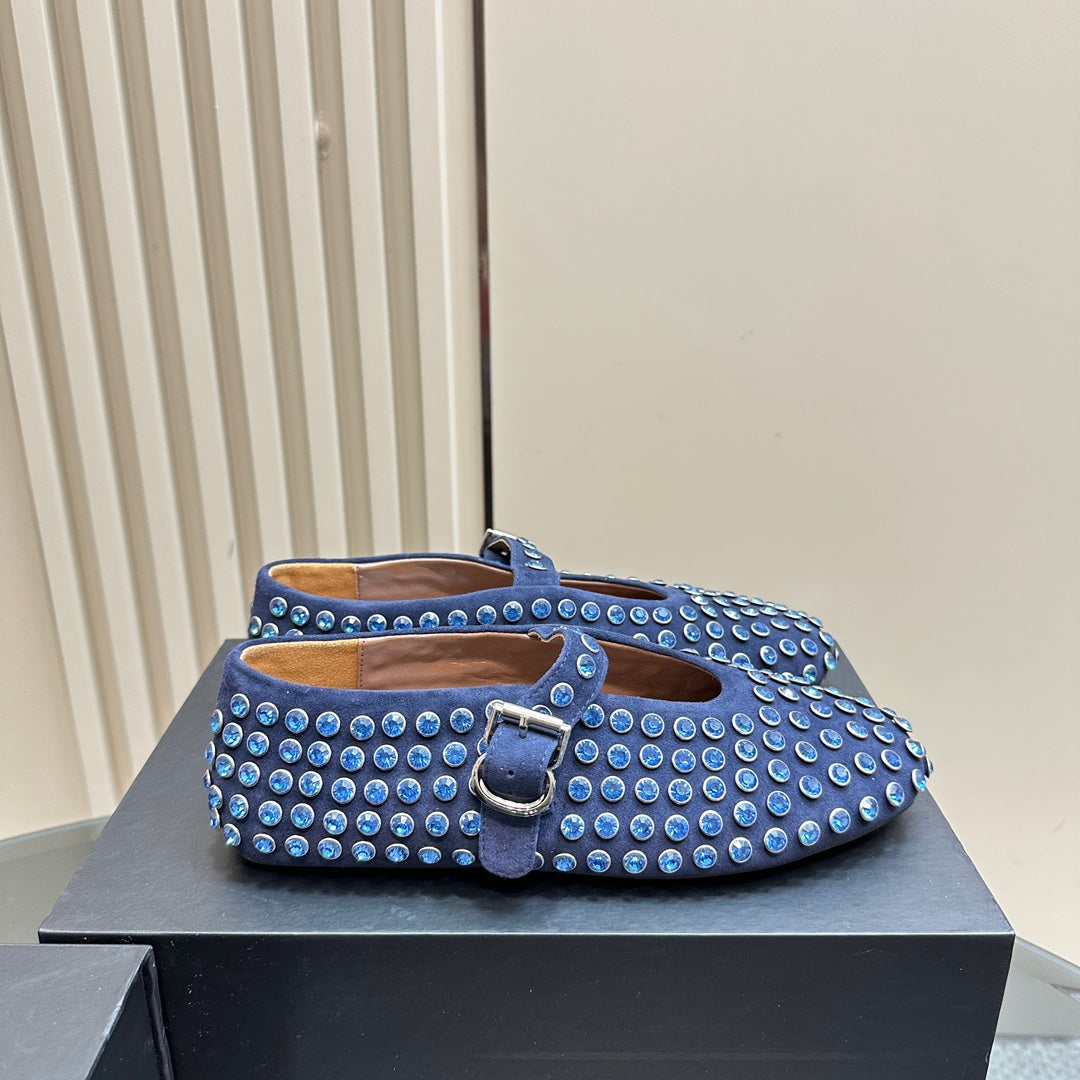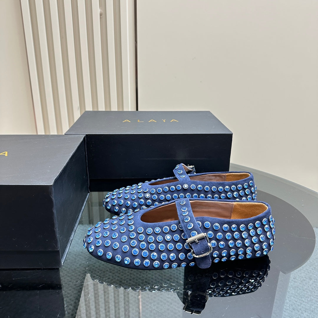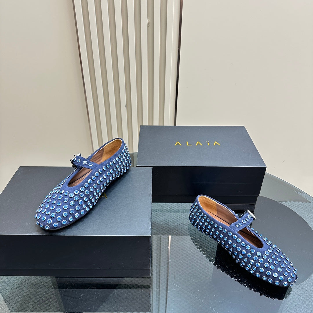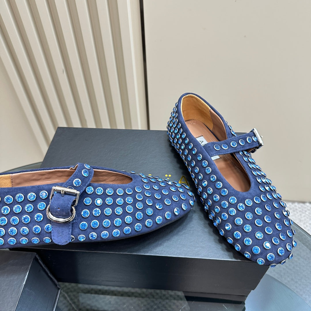 Alaia Strass Suede Ballet Flats In Dark Blue 999320