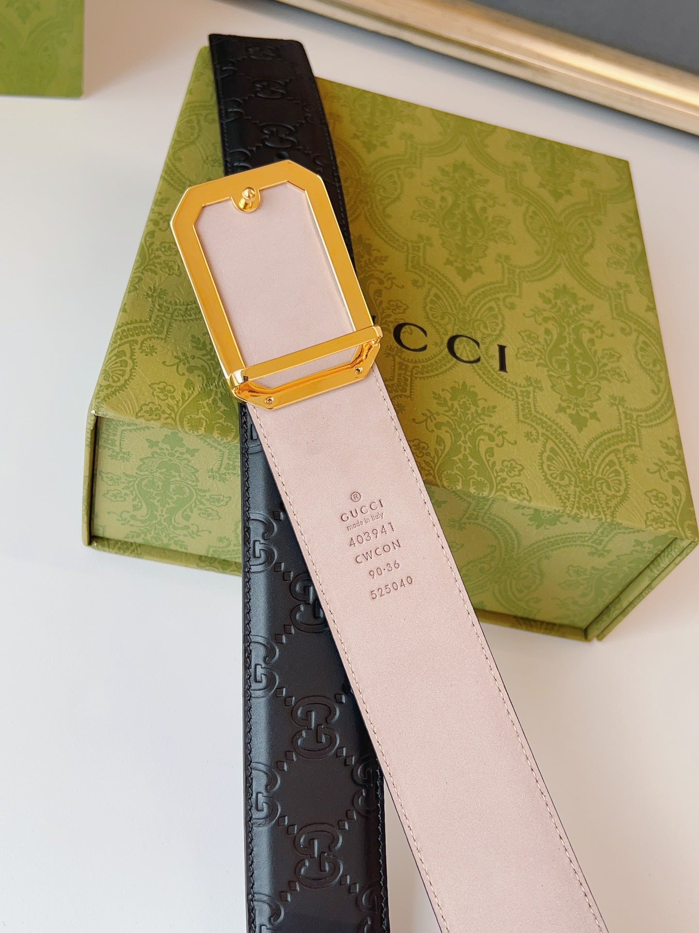 Gucci Signature Belt Gold Buckle 40mm Black Embossed Leather