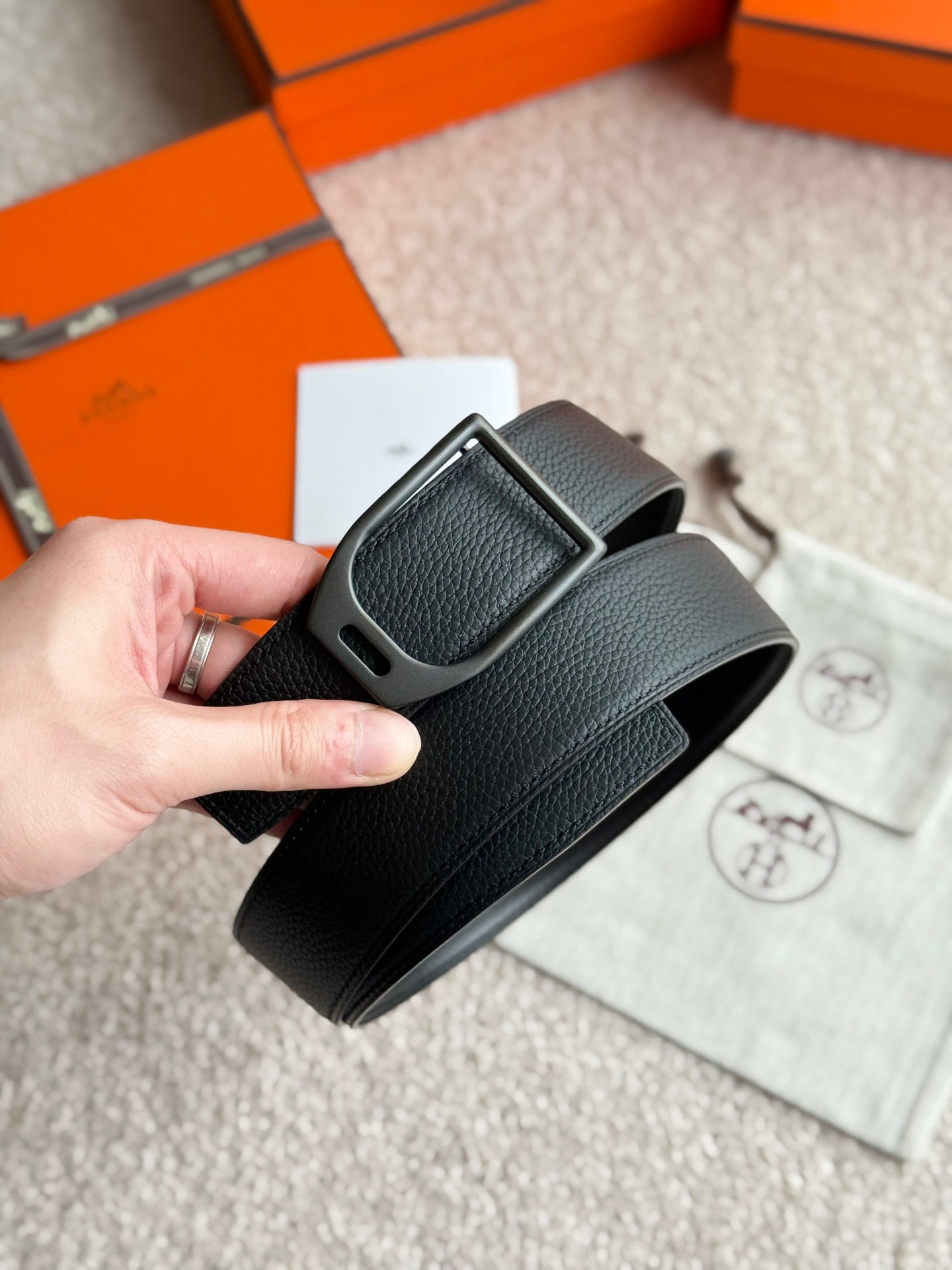HM Jockey Buckle Belt 38mm Black Calfskin 187512