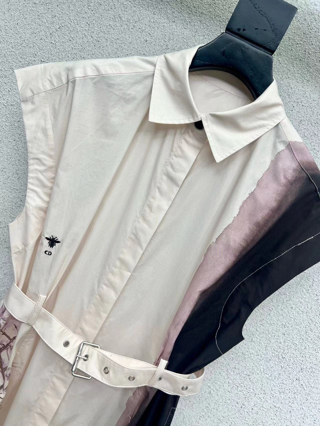 CD 25 Floral Dress With Belt Beige Cotton