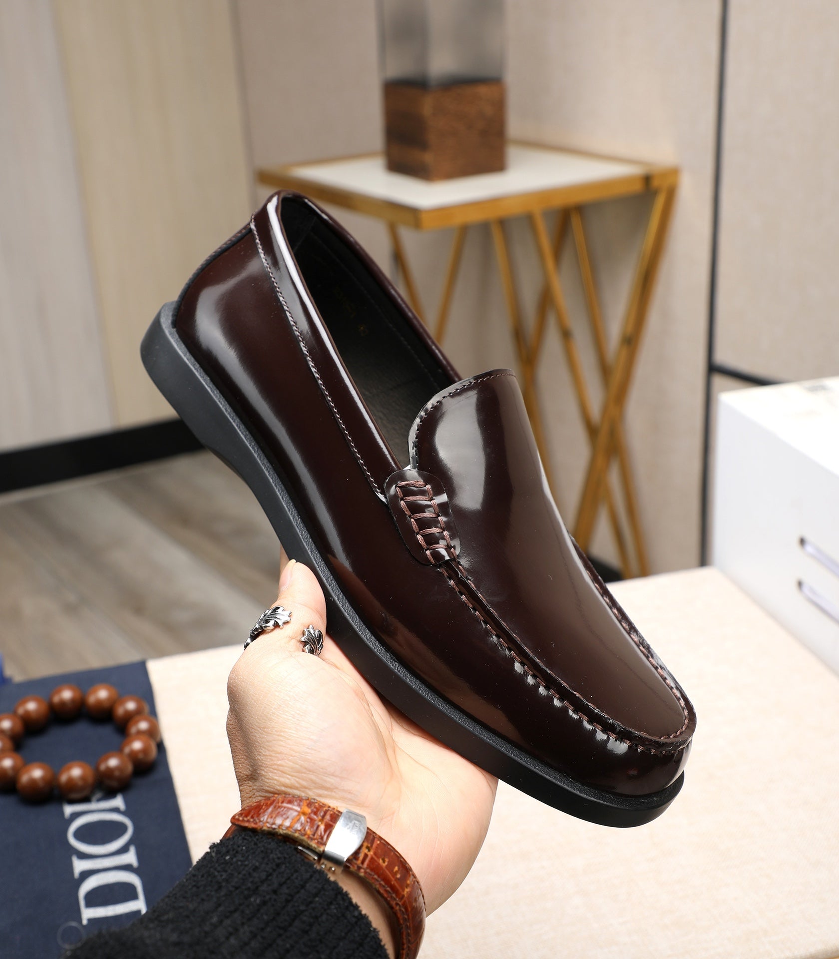 CD RETRO SEWED LOAFER WINE POLISHED CALFSKIN