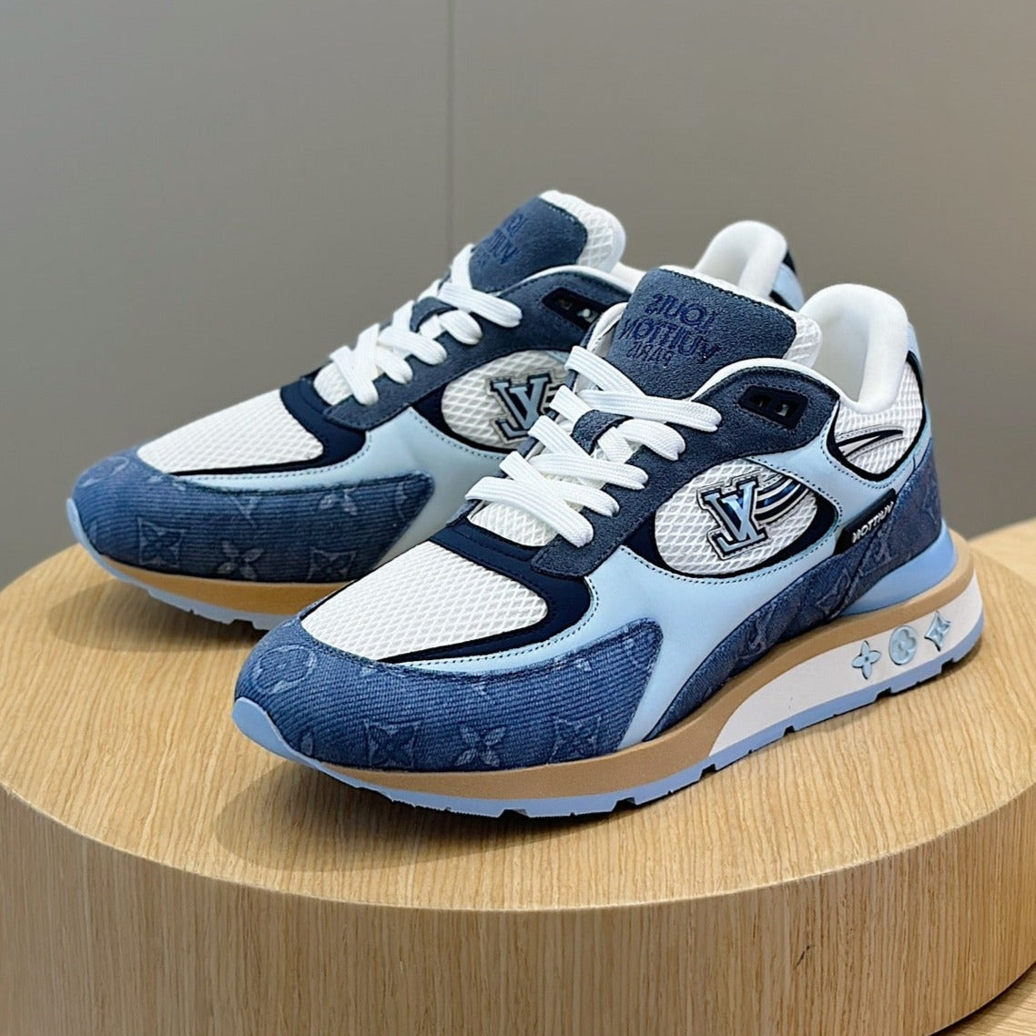 LV RUN AWAY SNEAKERS IN CERULEAN BLUE MESH FABRIC AND SUEDE