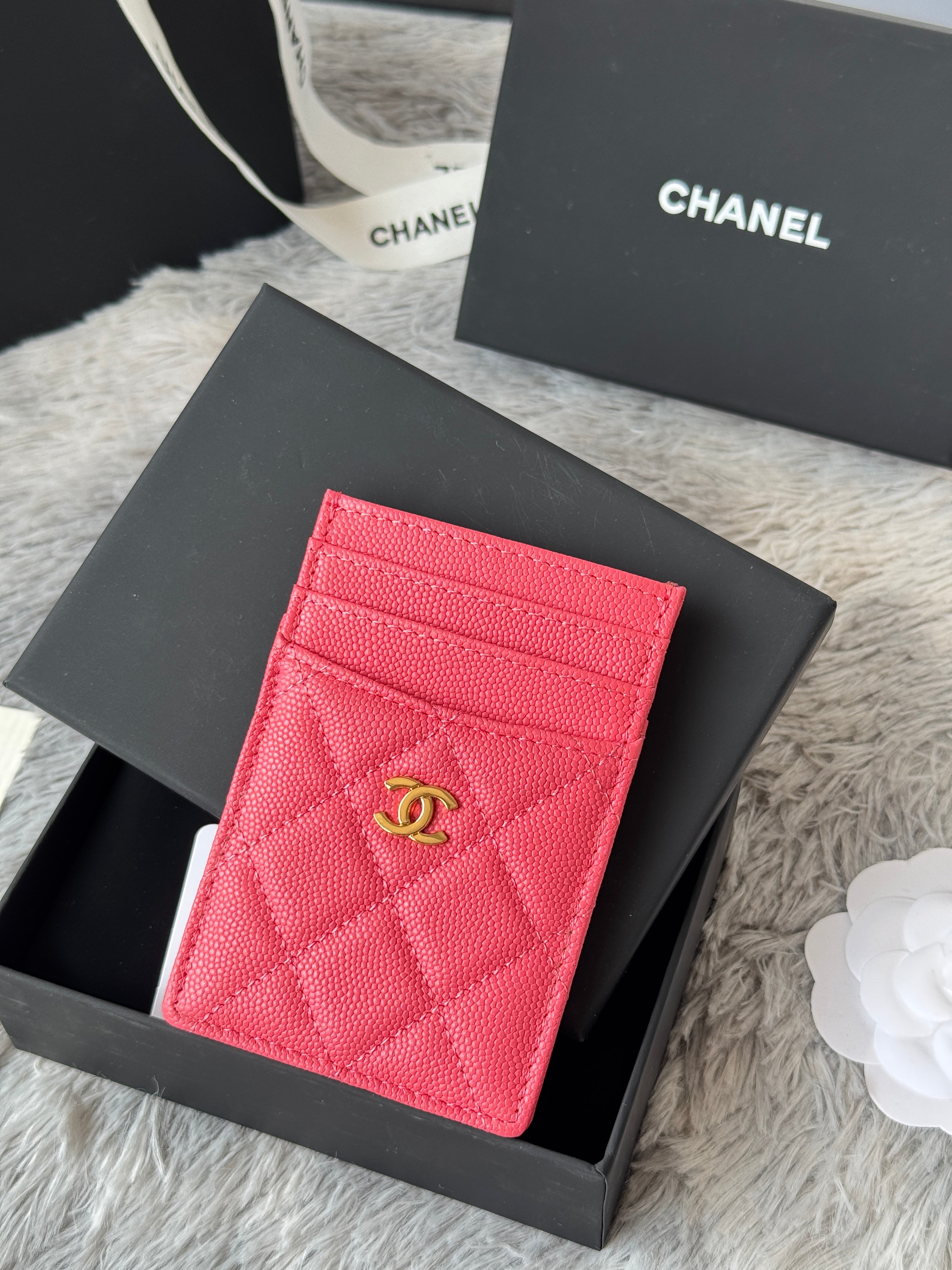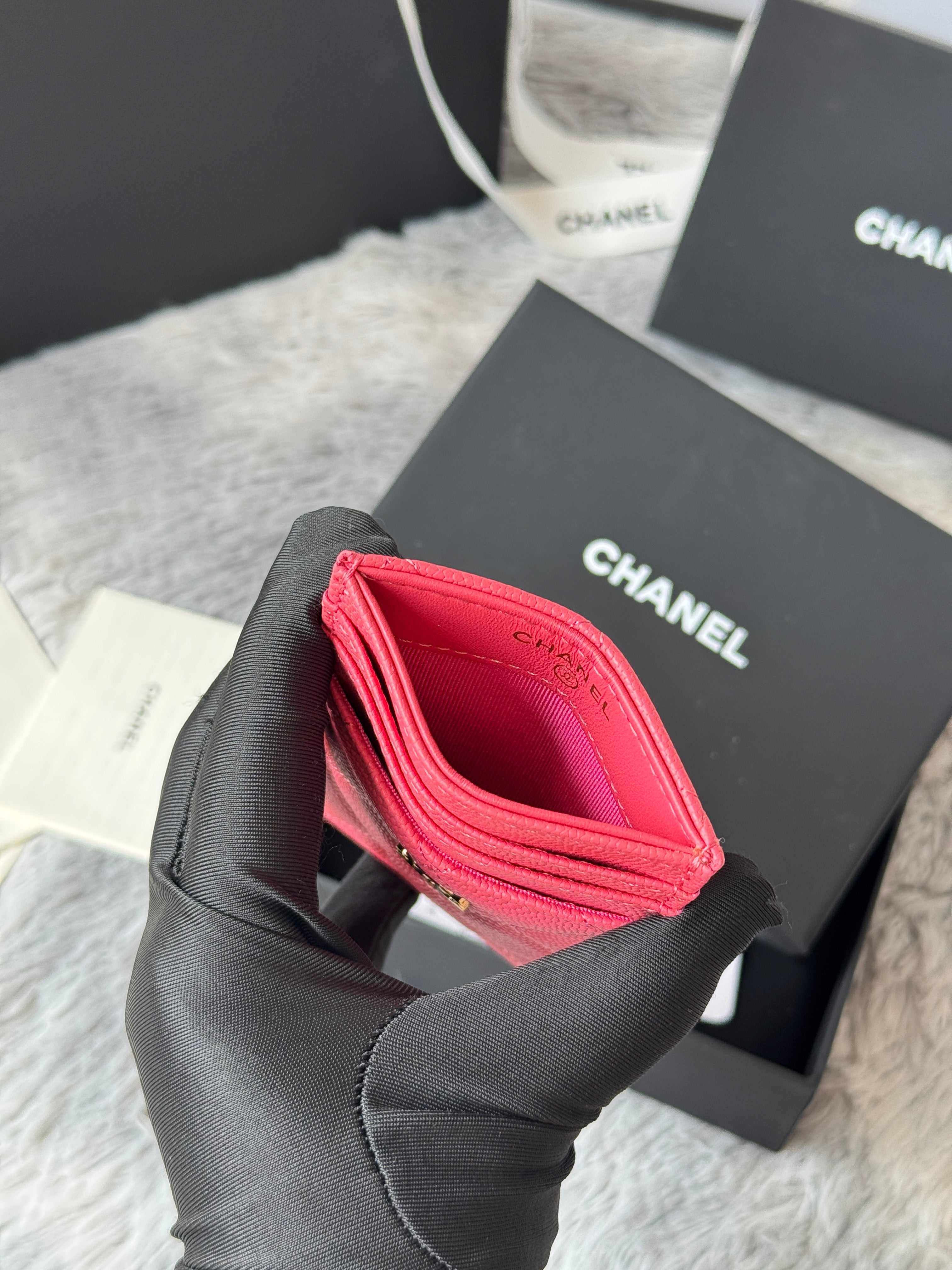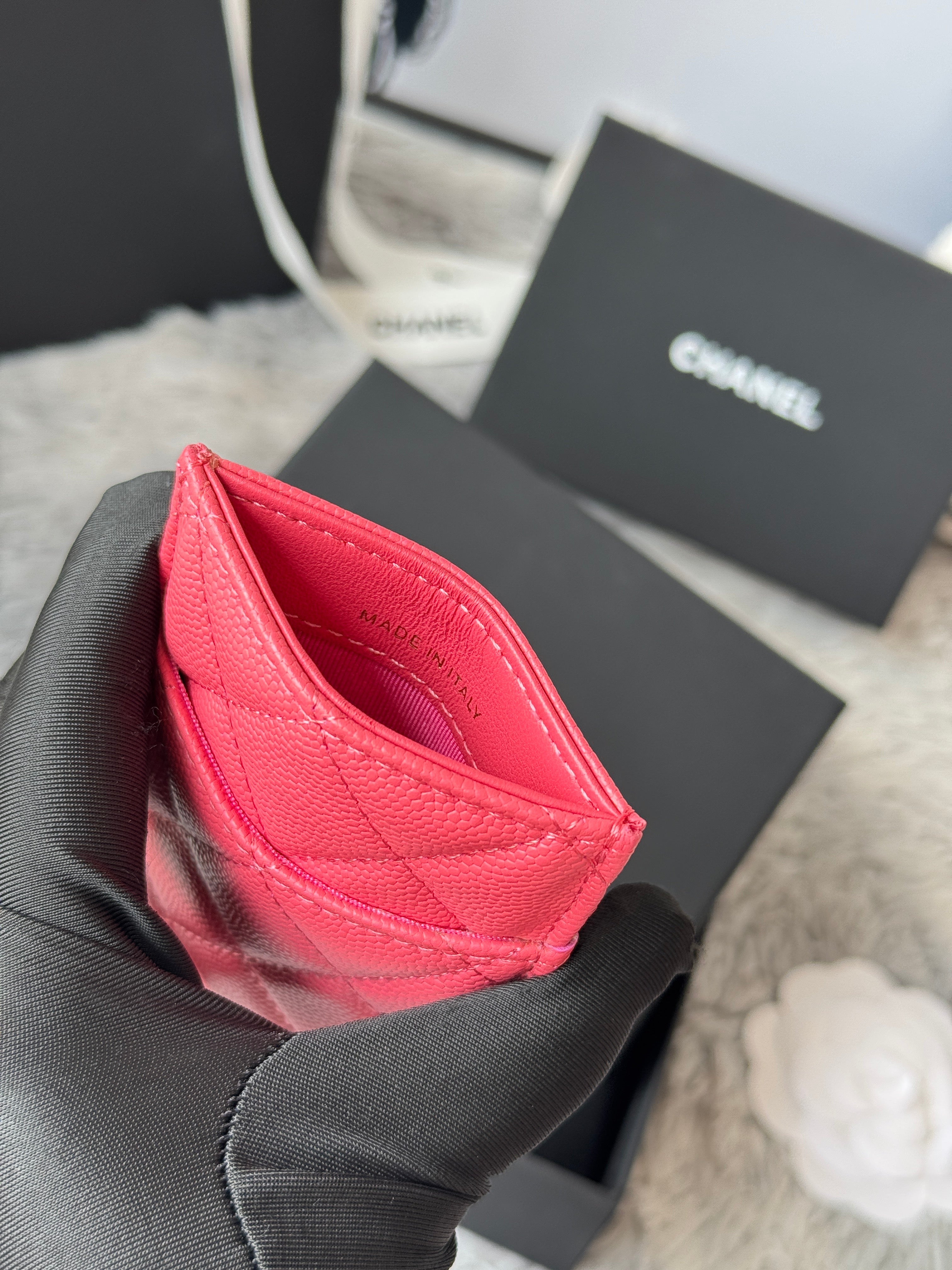 CC Carld Holder Pink Grain Calfskin 242686