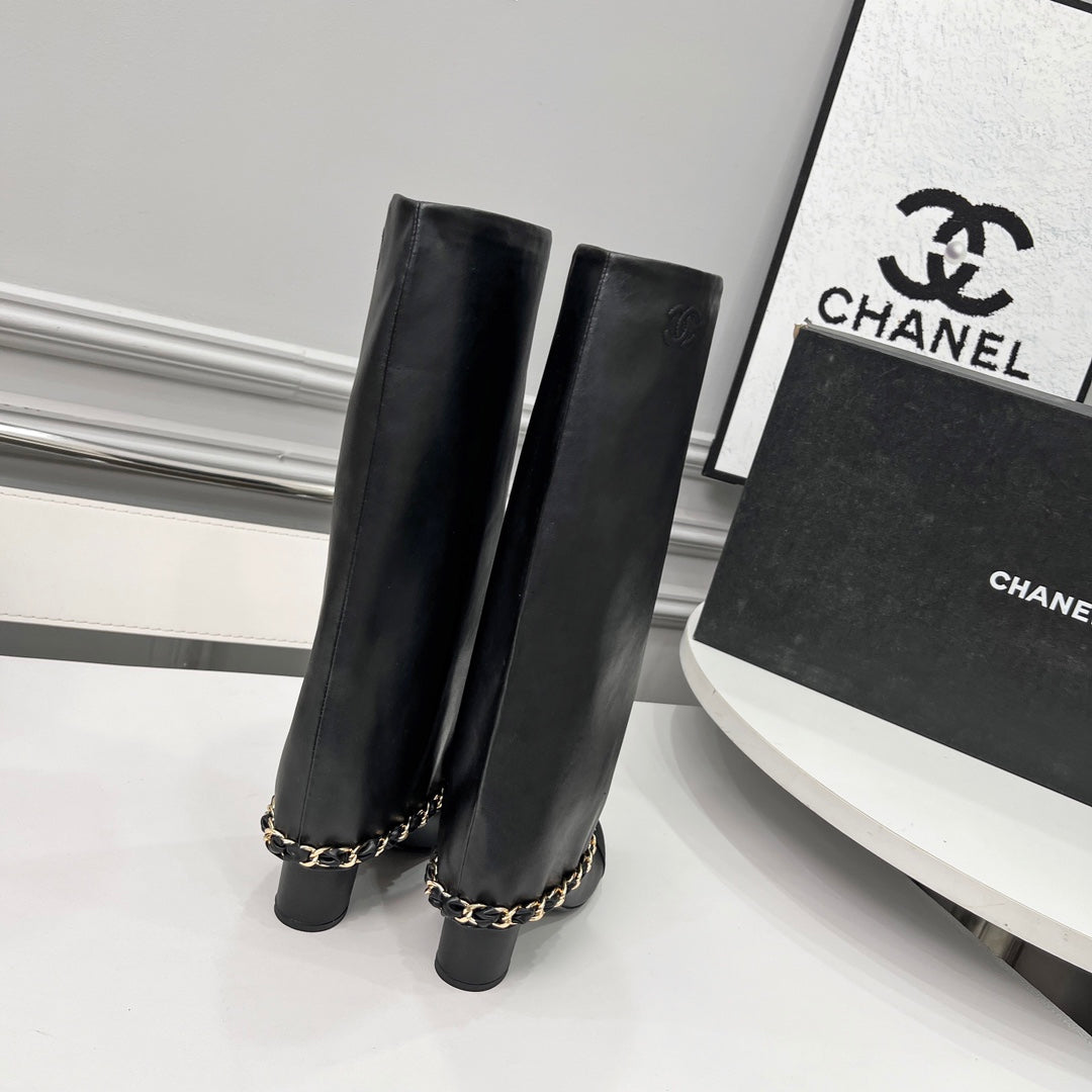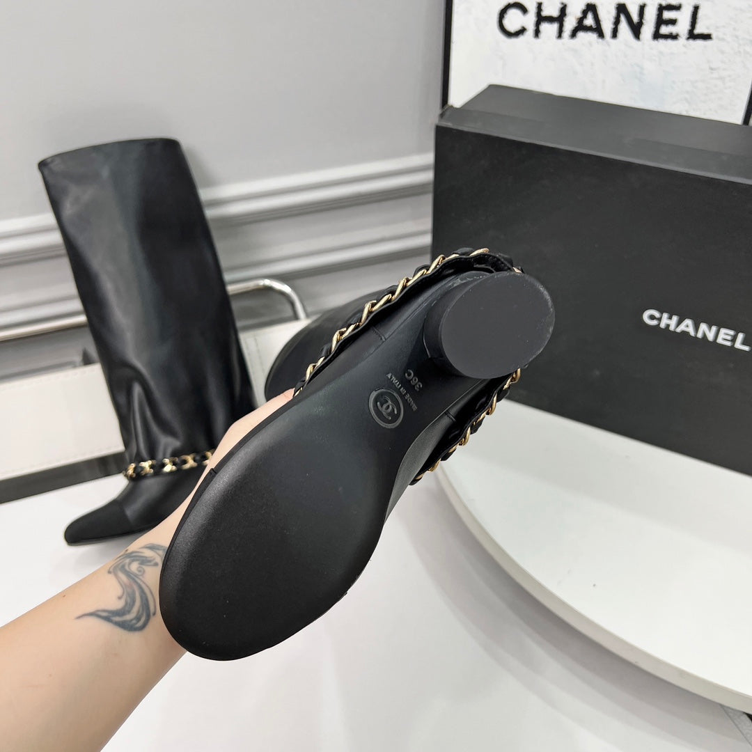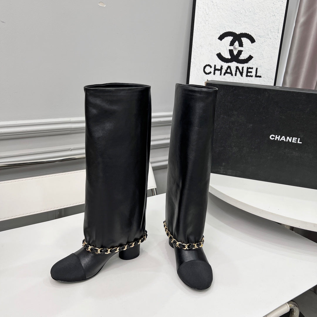 CC 25 High Boots With Chain 55mm Black Cowhide Grosgrain 374026