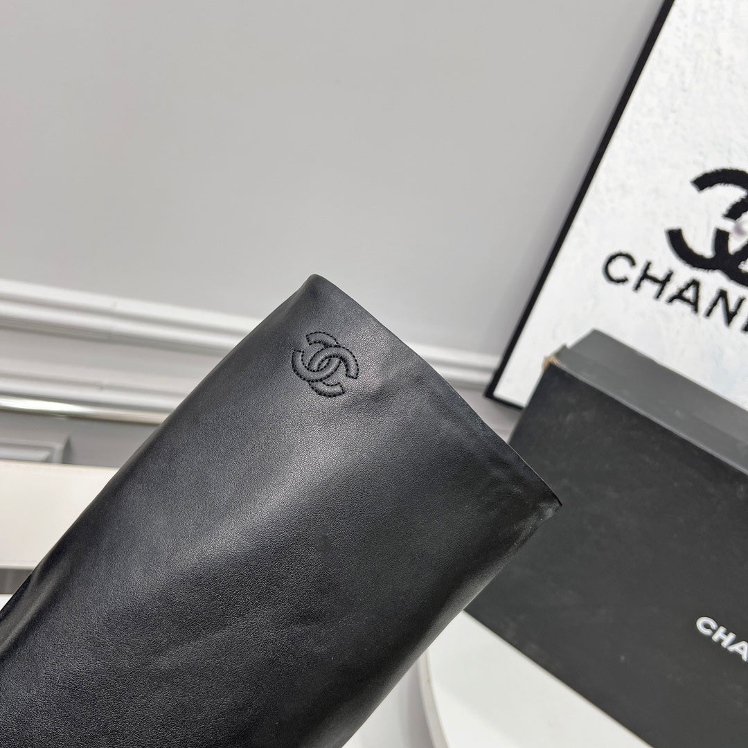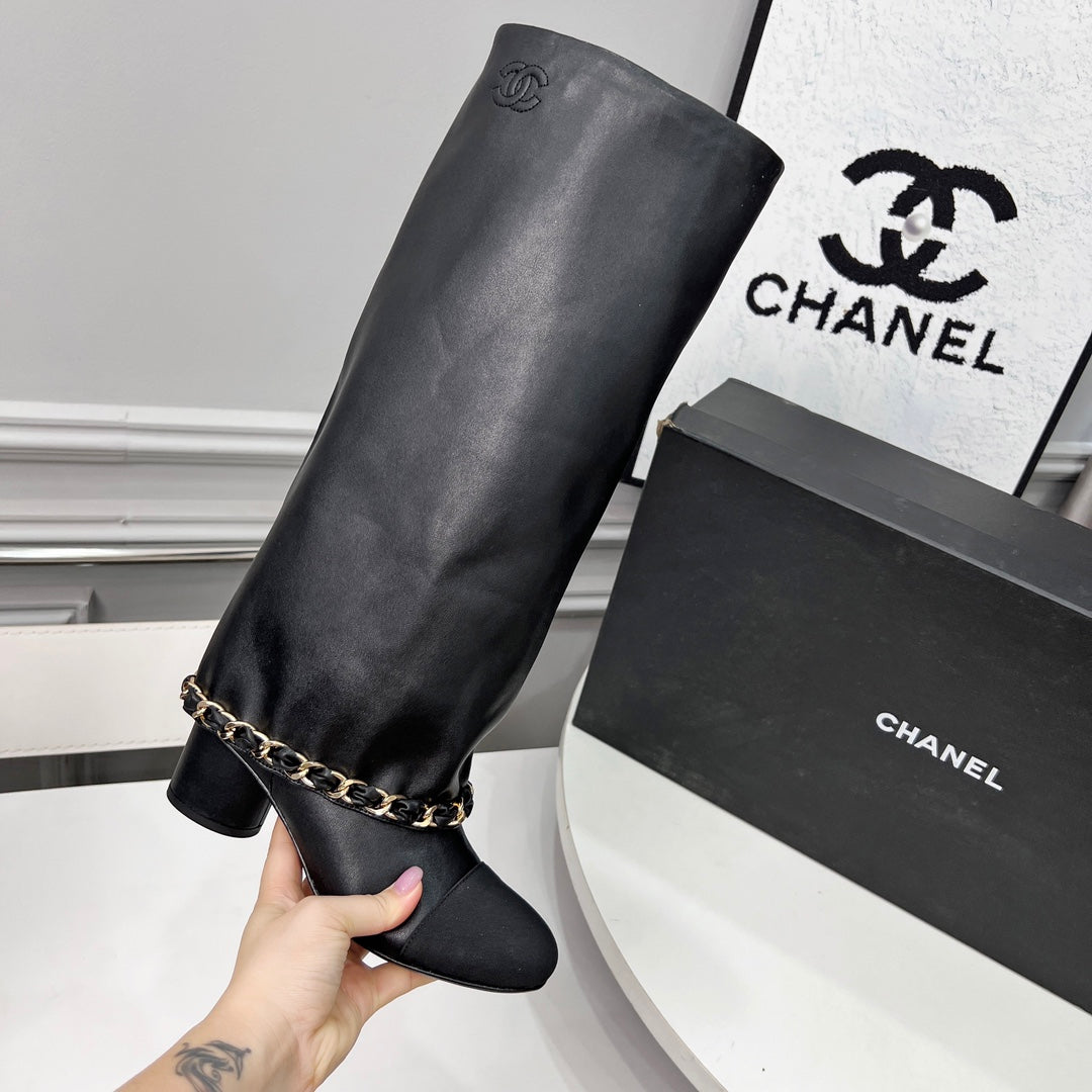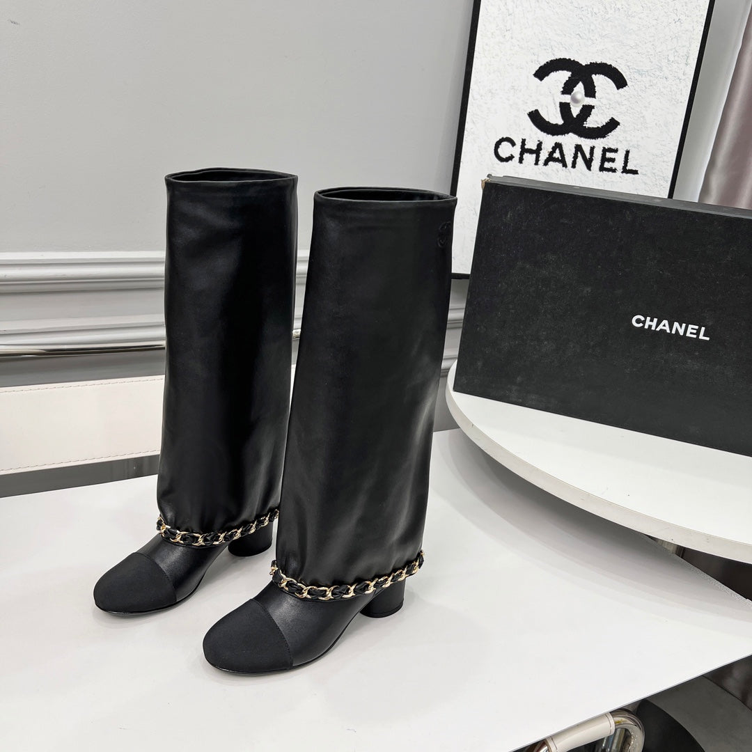 CC 25 High Boots With Chain 55mm Black Cowhide Grosgrain 374026