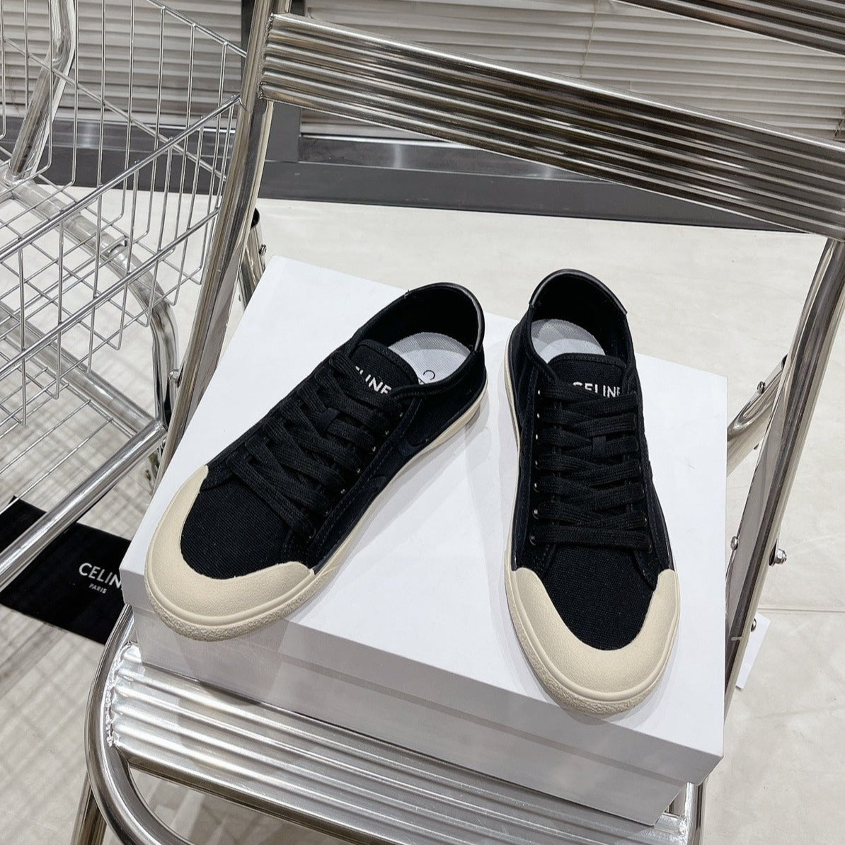 JANE SNEAKERS LOW LACE-UP WITH TRIOMPHE PATCH IN CANVAS AND CALFSKIN BLACK