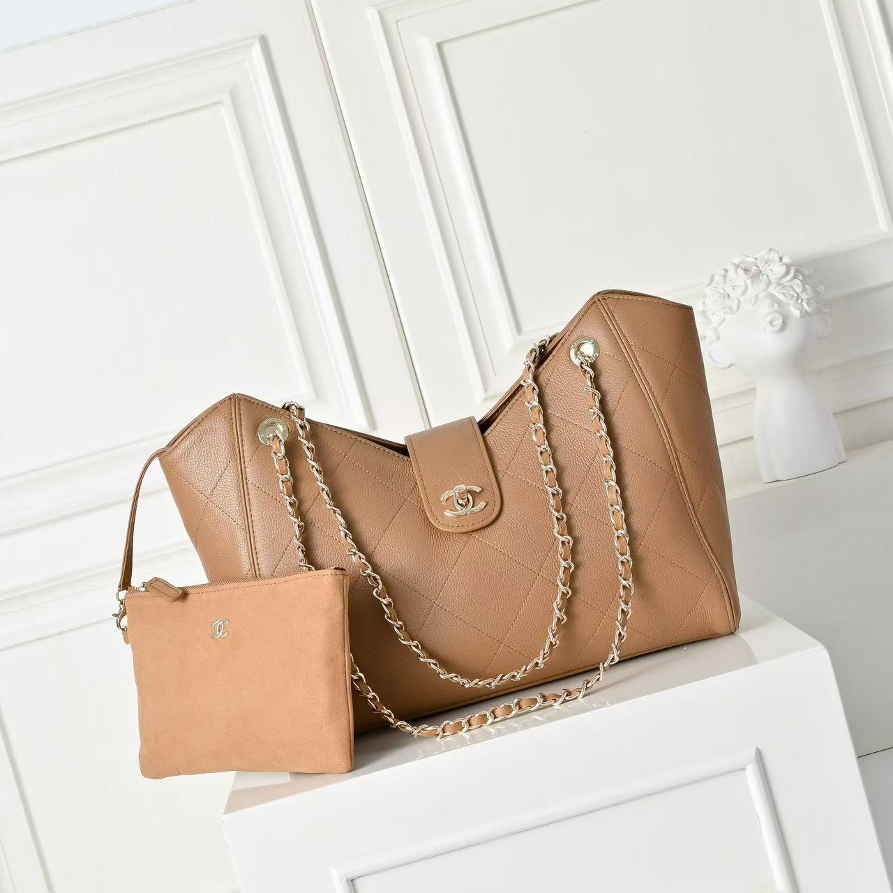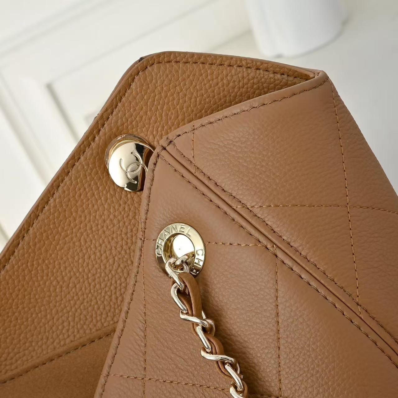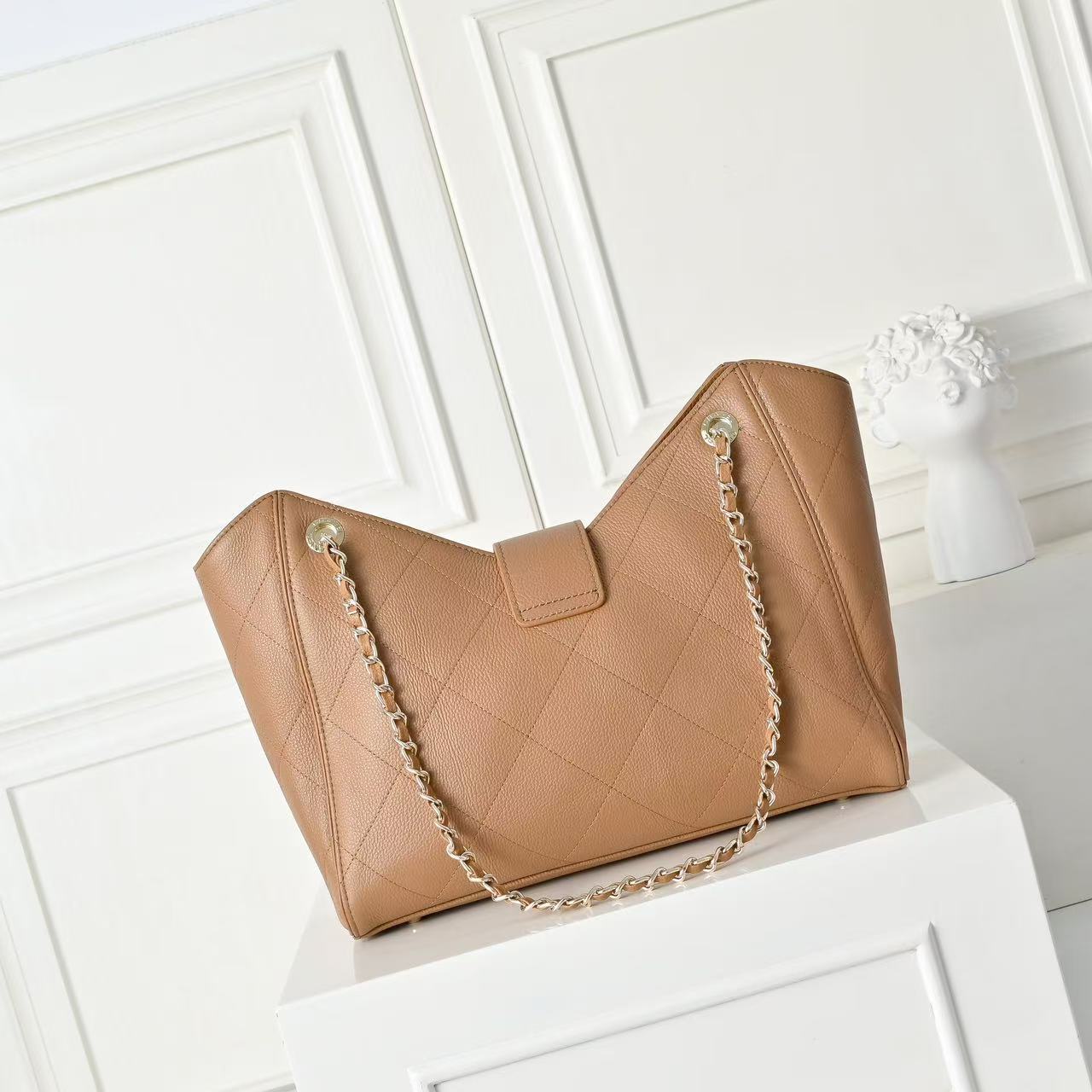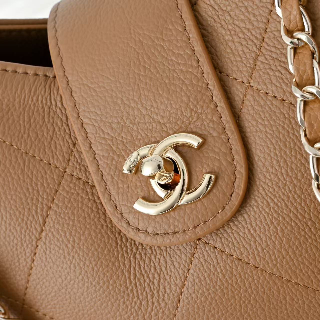 CC Maxi Shopping Bag Brown Grain Calfskin