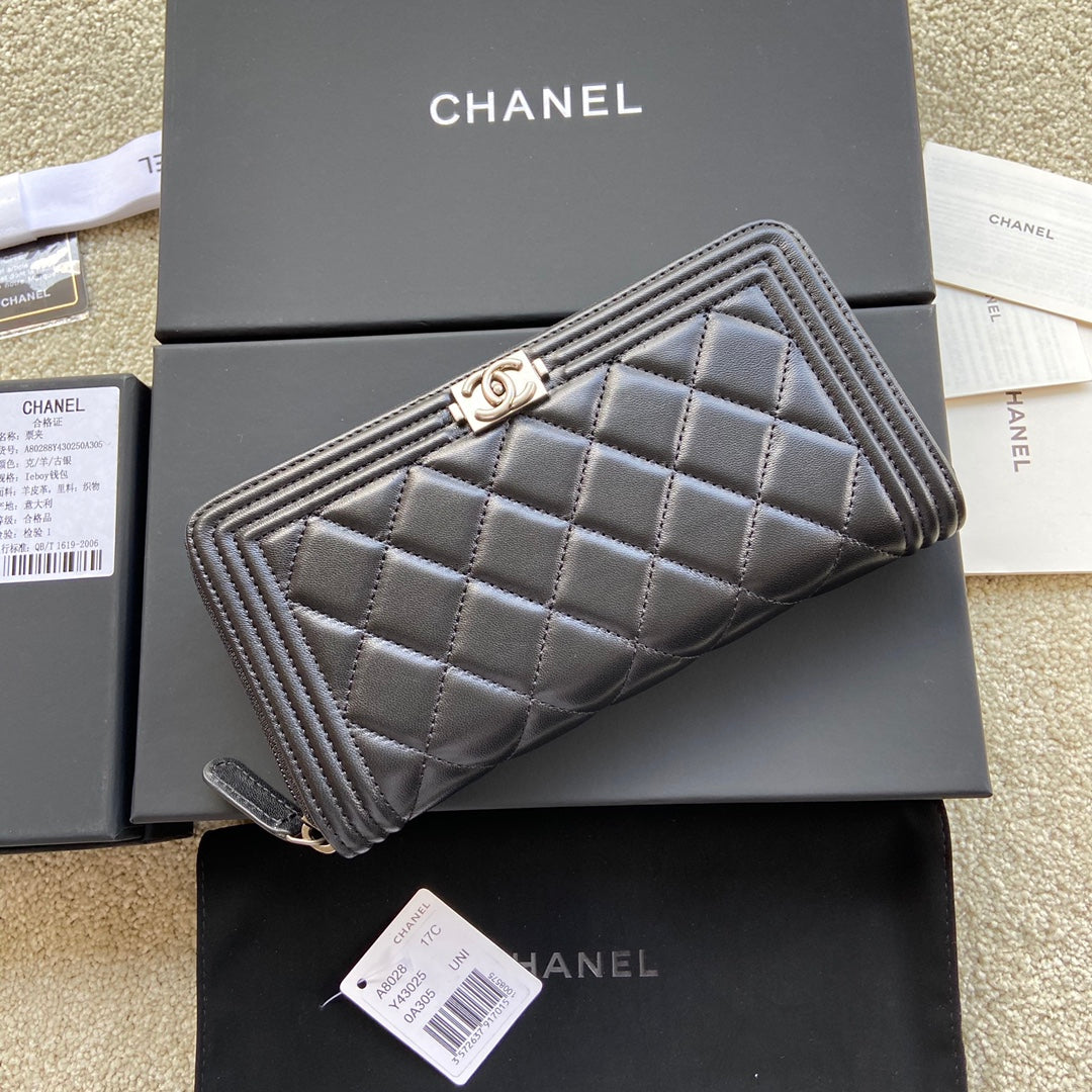 CC Sliver Buckle Boy Zipper Coin Wallet Black Sheepskin 229741