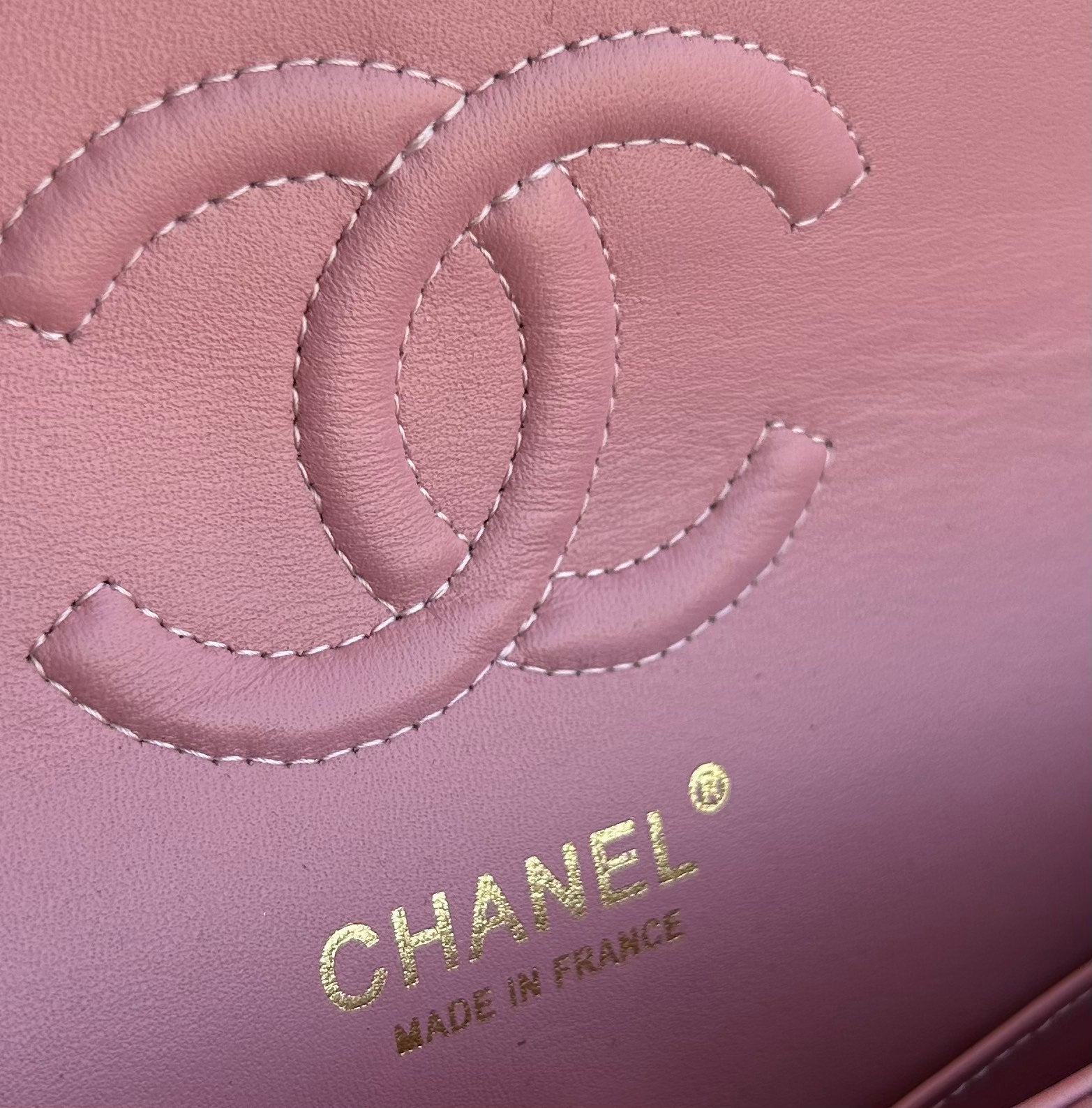 MEDIUM FLAP BAG 25 IN LIGHT PINK TWEED GOLD HARDWARE